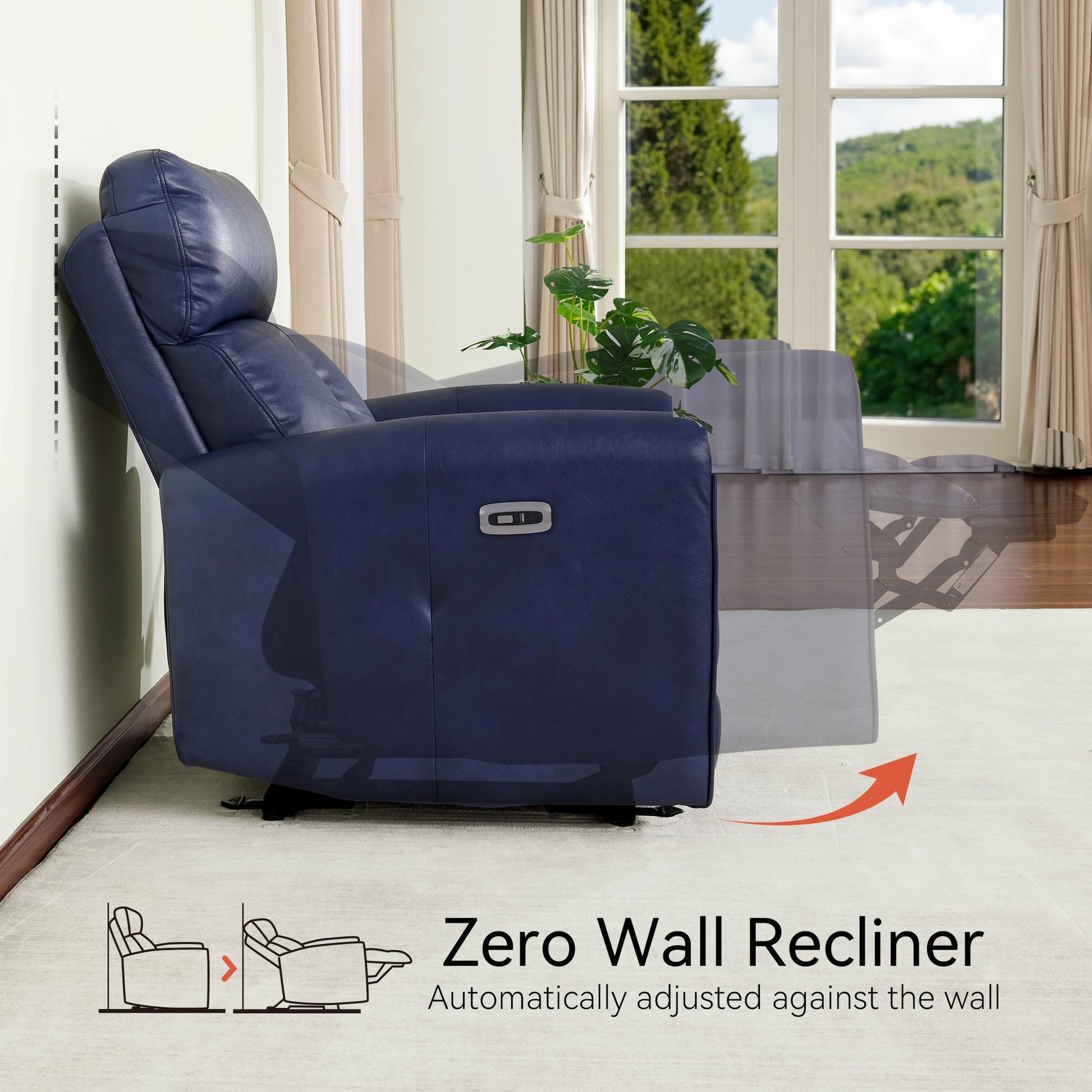 MCombo Power Small Recliners for Small Spaces, Modern Zero Wall Hugger Recliners Chair with Lumbar Support, USB and Charging Ports, FSC Certified, Faux Leather PR699 (Navy Blue)