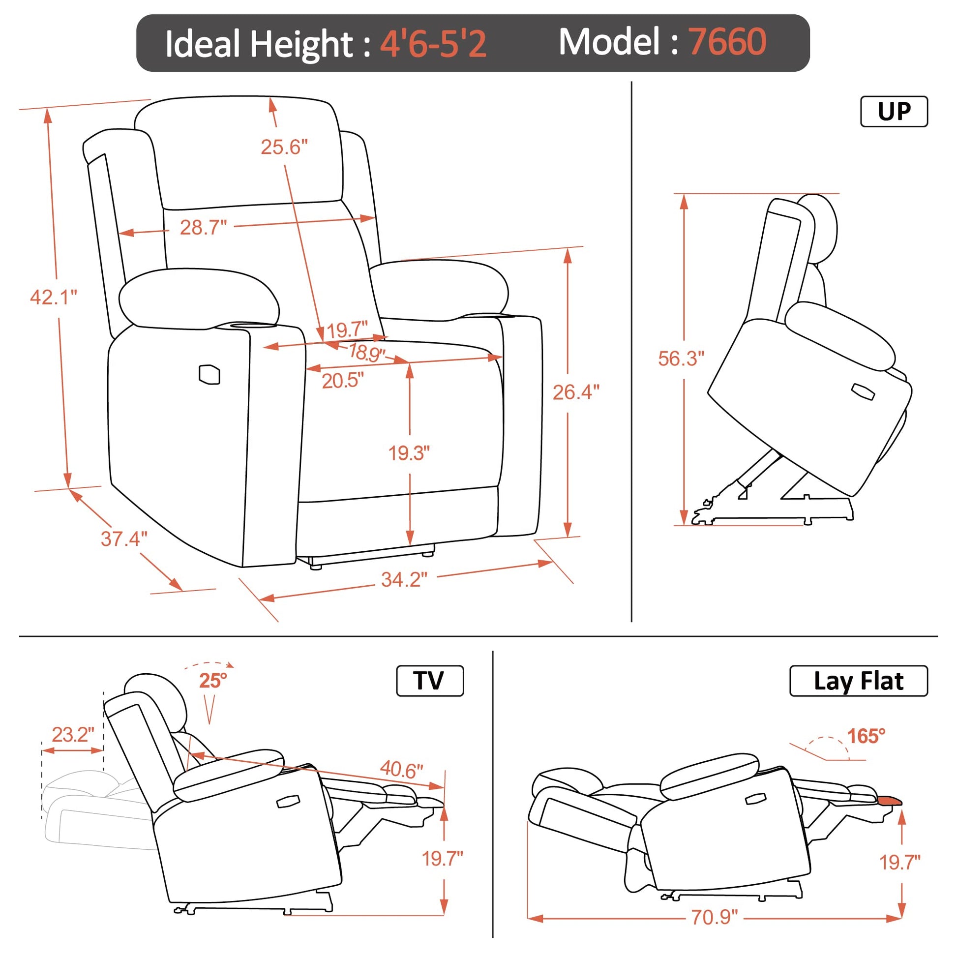 - Infinite Position: With the built-in triple motor, you can adjust the headrest, backrest, and footrest separately for infinite comfort positions. Ideal for reading, watching TV, napping, sleeping, or standing—perfect for those who struggle to sleep in a bed
