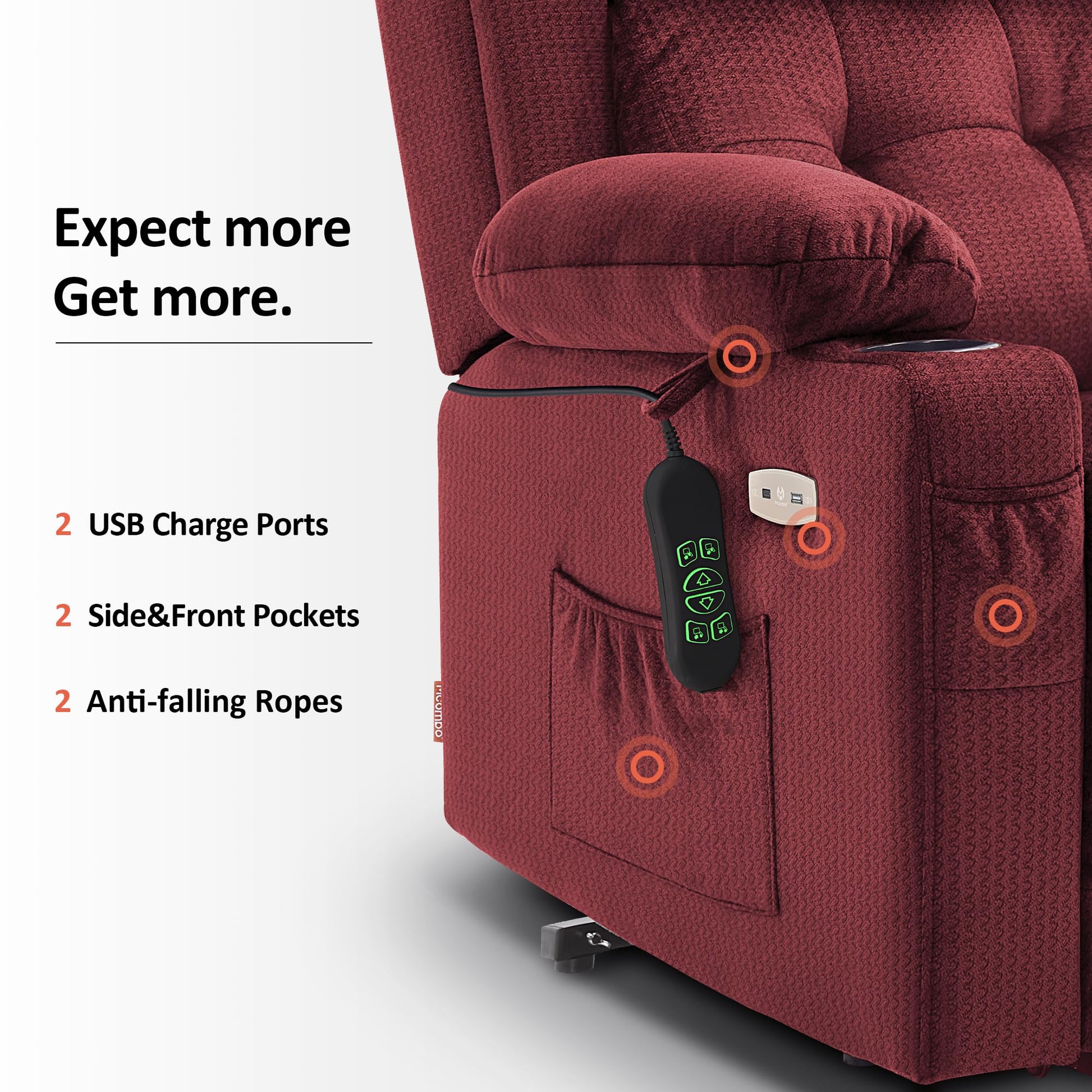 MCombo Small Triple Motor Power Lift Recliner Chair with Massage and Heat for Petite Elderly People, Adjustable Headrest, Infinite Position, USB Ports, Fabric 7664 (Burgundy, Small)
