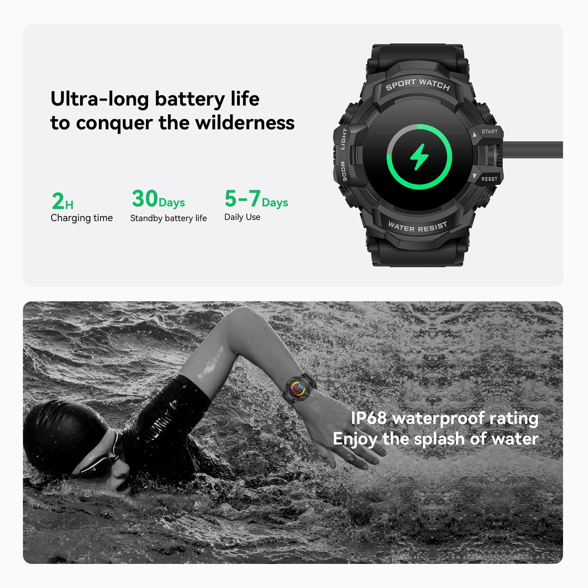 - ⌚️【Large battery capacity & IP68 waterproof】Equipped with a 350mAh high-capacity battery and USB magnetic charging. In daily use, the usage time is generally 5-7 days, and the standby time is up to 30 days. Our WATCH is built to last with an IP68 waterproof rating offering superior protection against water for reliable performance in any weather condition