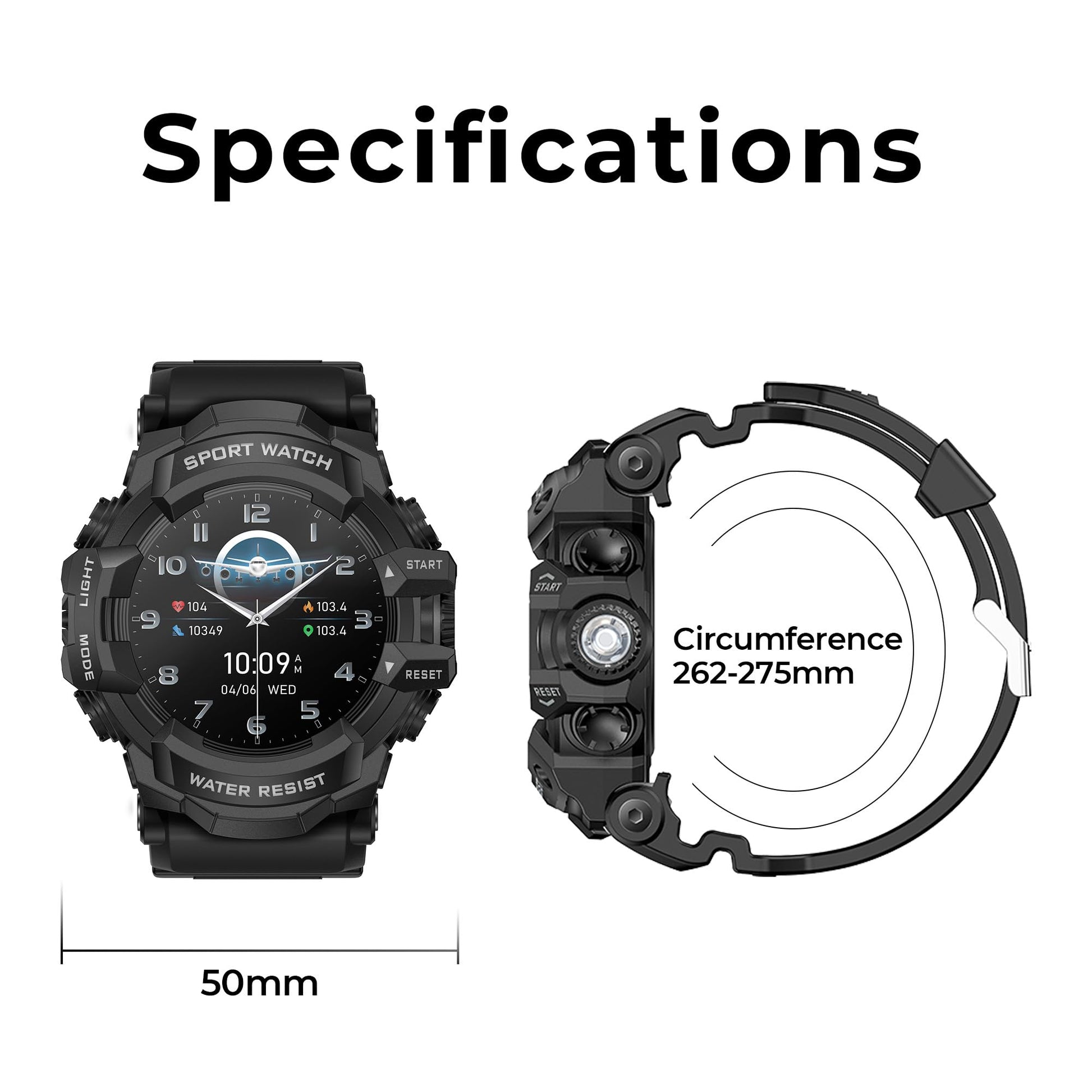 MIDDOW Military Smart Watch with Flashlight (Answer/Make Call) Compass, Heart Rate/Sleep/Pedometer/100+ Sports Modes, Fitness Tracker IP68 Waterproof, Long Battery Life Android & iOS (Black)