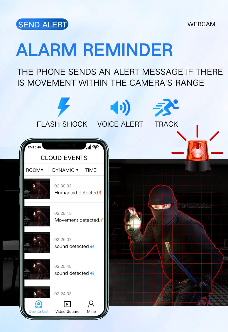 - Spy cam WIFI real-time detection and night vision: Indoor security camera WiFi uses highly sensitive sensors indoors and outdoors. Once the camera detects the motion of an object and connects to the Internet, camaras photography motion alarm will be sent to your device AAP. 1080P high-definition camera lens and nano infrared LED lamp. It can reach 15 feet in a dark environment.