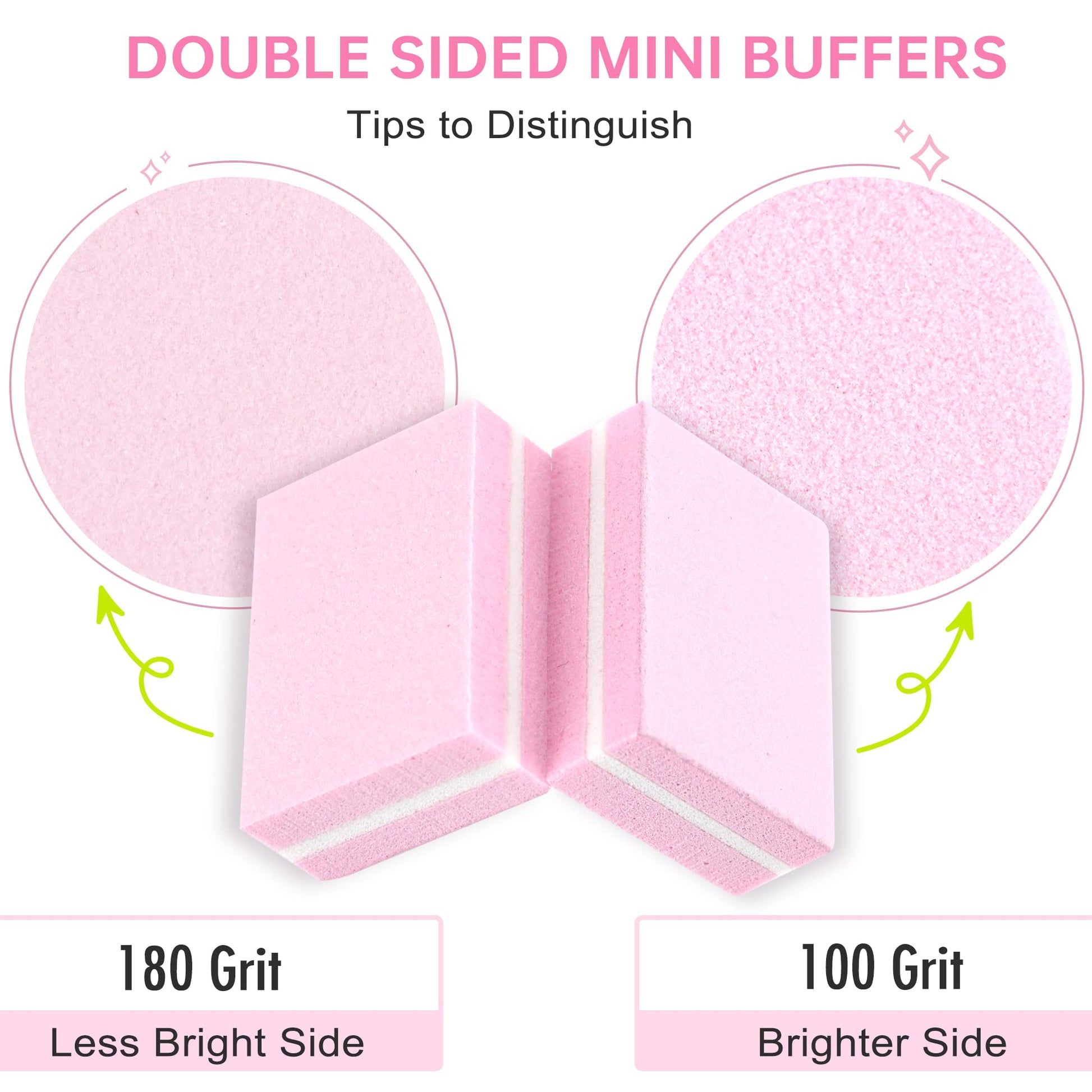 - At Home Manicure Tools - Double sided nail files sanding buffers are designed with 100/180 grit suit for both acrylic nails and natural nails. What's more, buffers are washable and reusable if needed, great for home DIY nail art! Mini size makes them portable everywhere.
