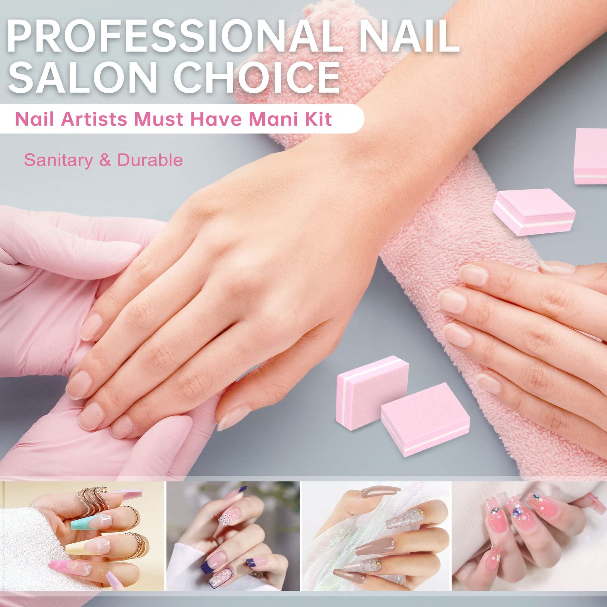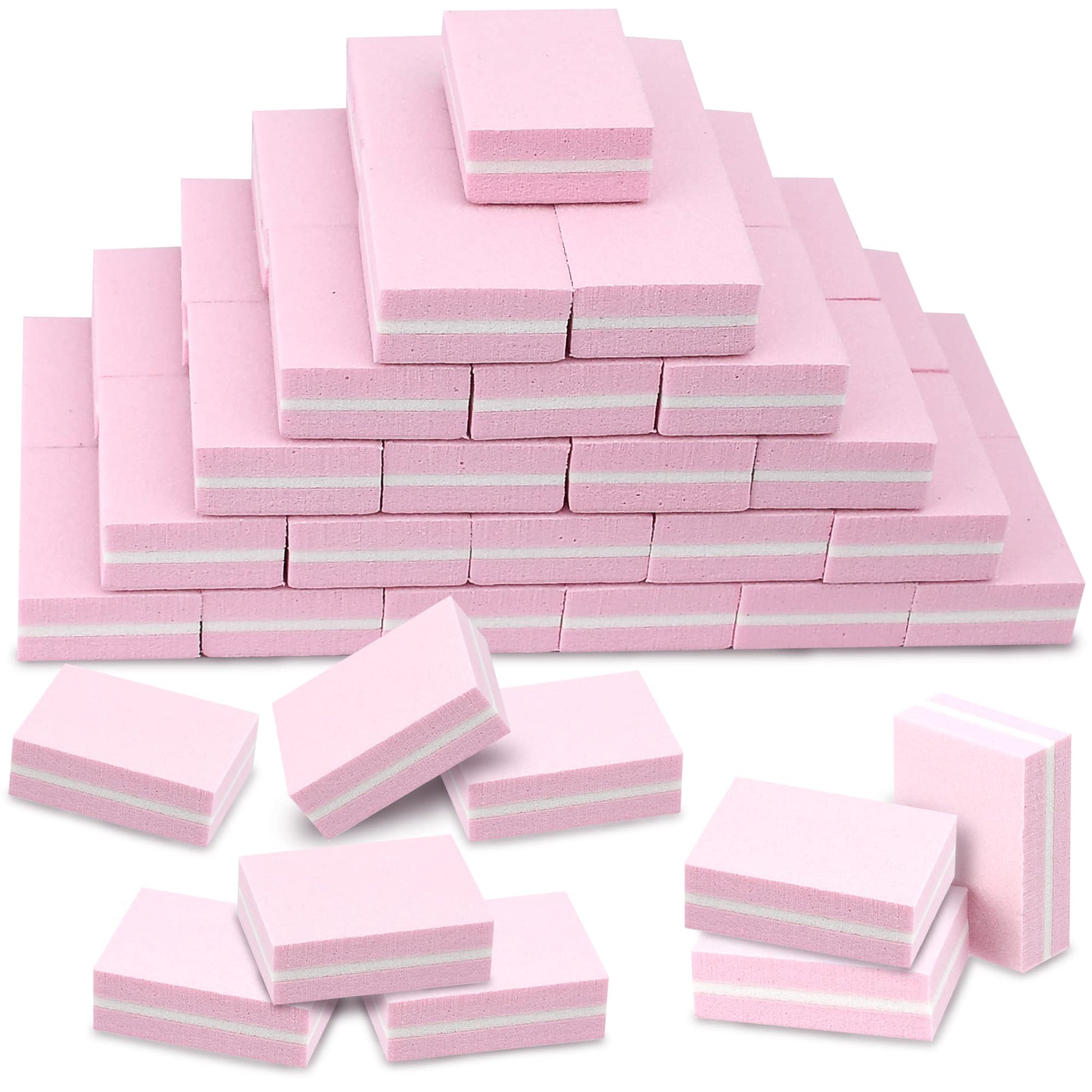 Mini Nail Buffer Blocks, 100/180 Grit Sponge Buffing Sanding Block File Manicure Tools Bulk 50Pcs (Pink)