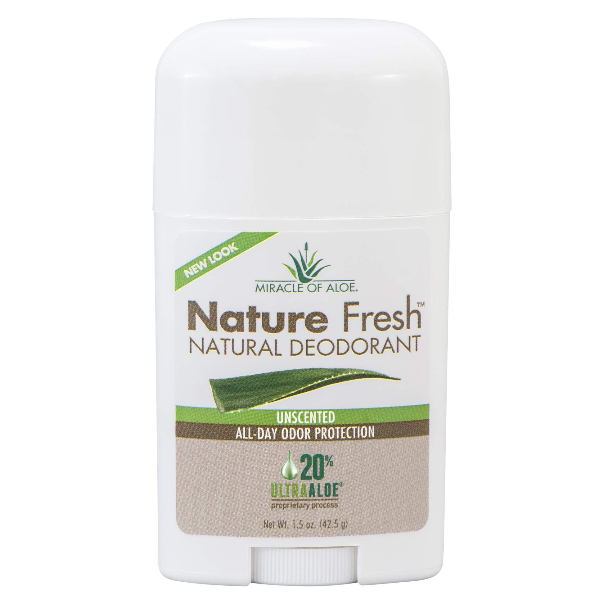 Miracle of Aloe's Nature Fresh Deodorant for Women or Men- Natural Formula W/No Aluminum or Harsh Chemicals- Long-Lasting Odor Control, Unscented 20% Pure UltraAloe Aloe Vera Gel, Cruelty-Free (1.5oz)