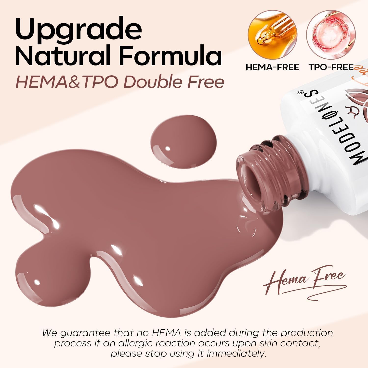 - Hypoallergenic Formula: Specifically formulated without HEMA and TPO, 13non-toxic and vegetarian that makes people feel good. Modelones shimmer nude brown gel polish set is ideal for users with sensitive skin and allergies, promoting a safer manicure experience. There are no harsh ingredients or adhesives that lead to damaged nails.