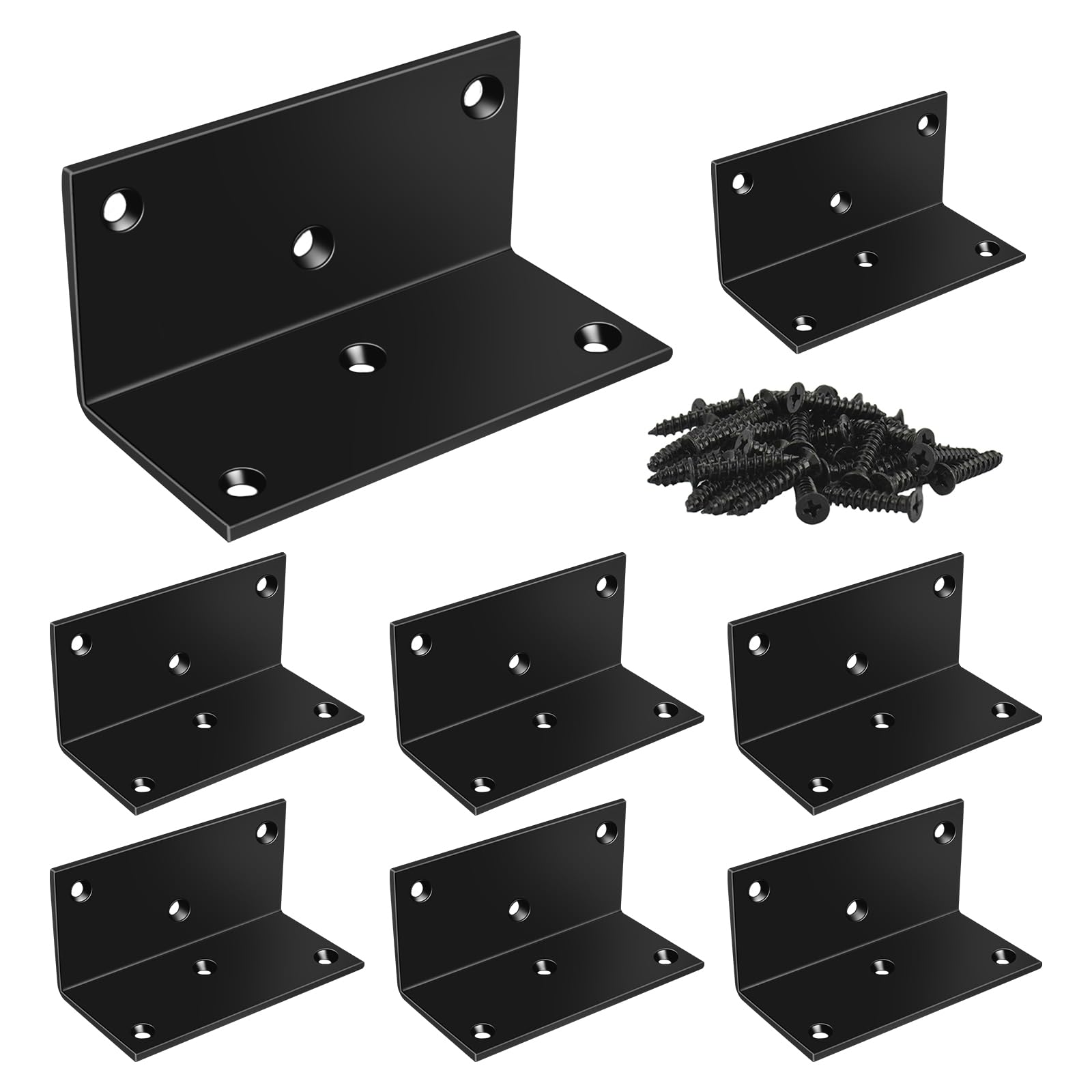 MOZCORN 8 Pack 90-Degree Corner Brace, 2x2x4in Heavy Duty L Brackets, Steel Angle Brackets with Screws, for Furniture, Shelves, Cabinets, DIY Projects, Woodworking, and Home Improvement, Black