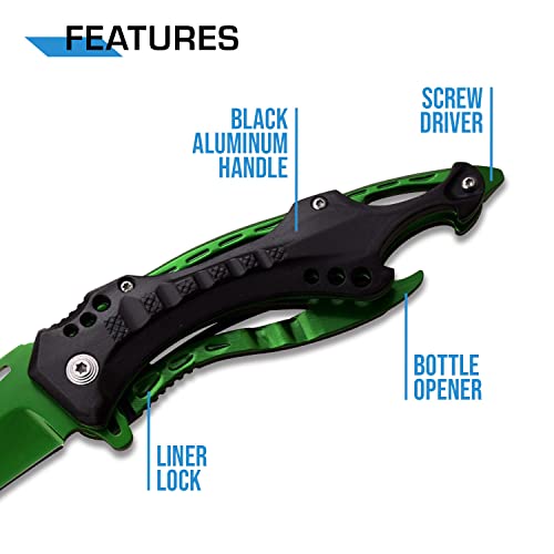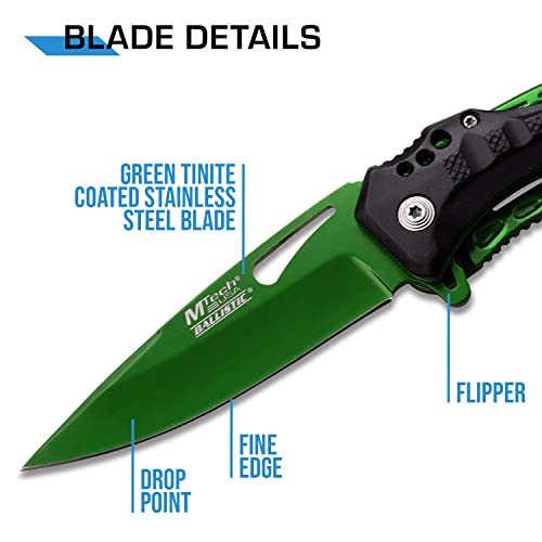 MTech USA – Spring Assisted Folding Knife – Green Electroplated Fine Edge Stainless Steel Blade, Black Aluminum Handle, Pocket Clip, Tactical, EDC, Self Defense- MT-A705GN