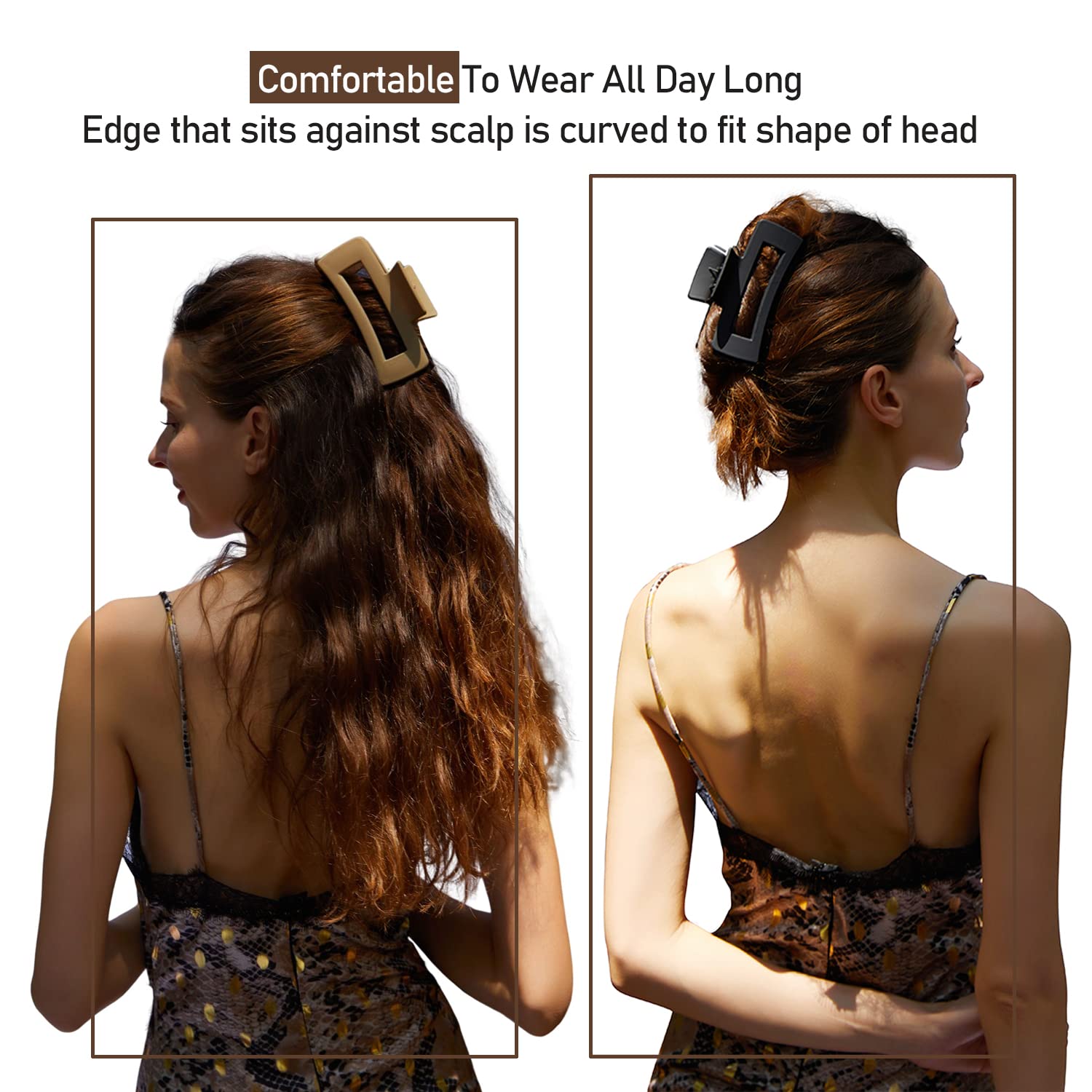 - 2 SIZE OF COMBINATION - Two sizes of hair clips for women give you more hairstyle options, you can hold all your hair up with 4 inch larger hair claws, or use 2 inch smaller claw clips for a half up style.