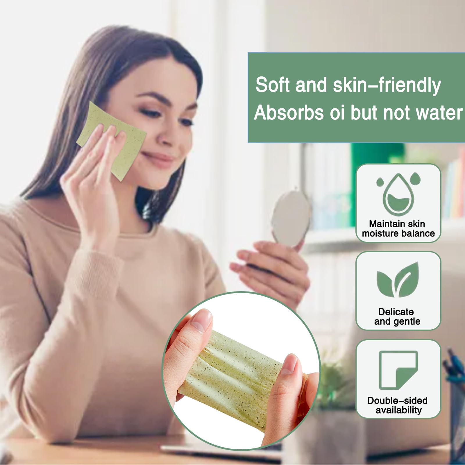 Natural Face Oil Blotting Paper -Bamboo Charcoal 600 Counts, Easy Dispensing Oil Absorbing Sheets, Premium Handy Facial Blotting Papers - Face Skin Care or Beauty Make Up Must Have (White-Green Tea)