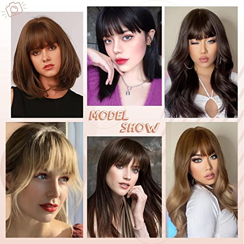 - ☘ Perfectly Shape Your Face: Wispy bangs & French bangs. The length and width are perfect for different face shapes. Wispy bangs with hair temples , it looks very cute and nifty.This hairstyle is thin and gives a refreshing feel and is the most popular see-through bangs hairpin. French bangs have enough thickness to cover your forehead without worrying about wispy. The hair temples on both sides can correct different facial contours. You can also trim it when it is too long or not needed.