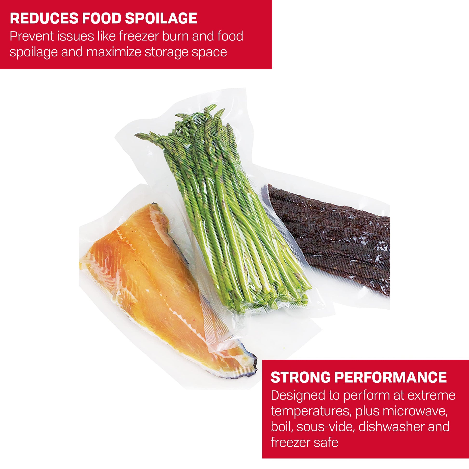 - Product 2: VARIETY PACK INCLUDES: 5 Pre-Cut Quart Sized Vacuum Sealer Bags (8.6 in x 11.8 in), 5 Pre-Cut Gallon Sized Vacuum Sealer Bags (11 in x 15.75 in), 1 Vacuum Sealer Roll (7.9 in x 19.7 ft) and 4 Vacuum Sealer Rolls (11 in x 19.7 ft)