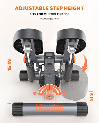 - Strengthen Balance & Core Muscles: There is a stride adjustment knob at the bottom of the Niceday stepper; You can adjust the height of the steps according to your needs to work on balance and strengthen your core muscles; A low stride makes it easier to step to extend your exercise time, and a high stride will burn more calories