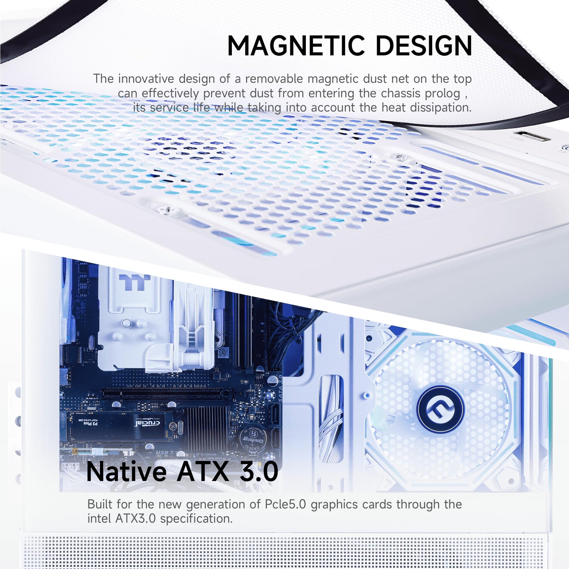 - 【Extreme heat dissipation and aesthetics】6 RGB Fans for Maximum Air Flow. NINGMEI Soul Series Case, the top of the chassis is equipped with an independent and removable magnetic dust screen to maximize heat dissipation and aesthetics.