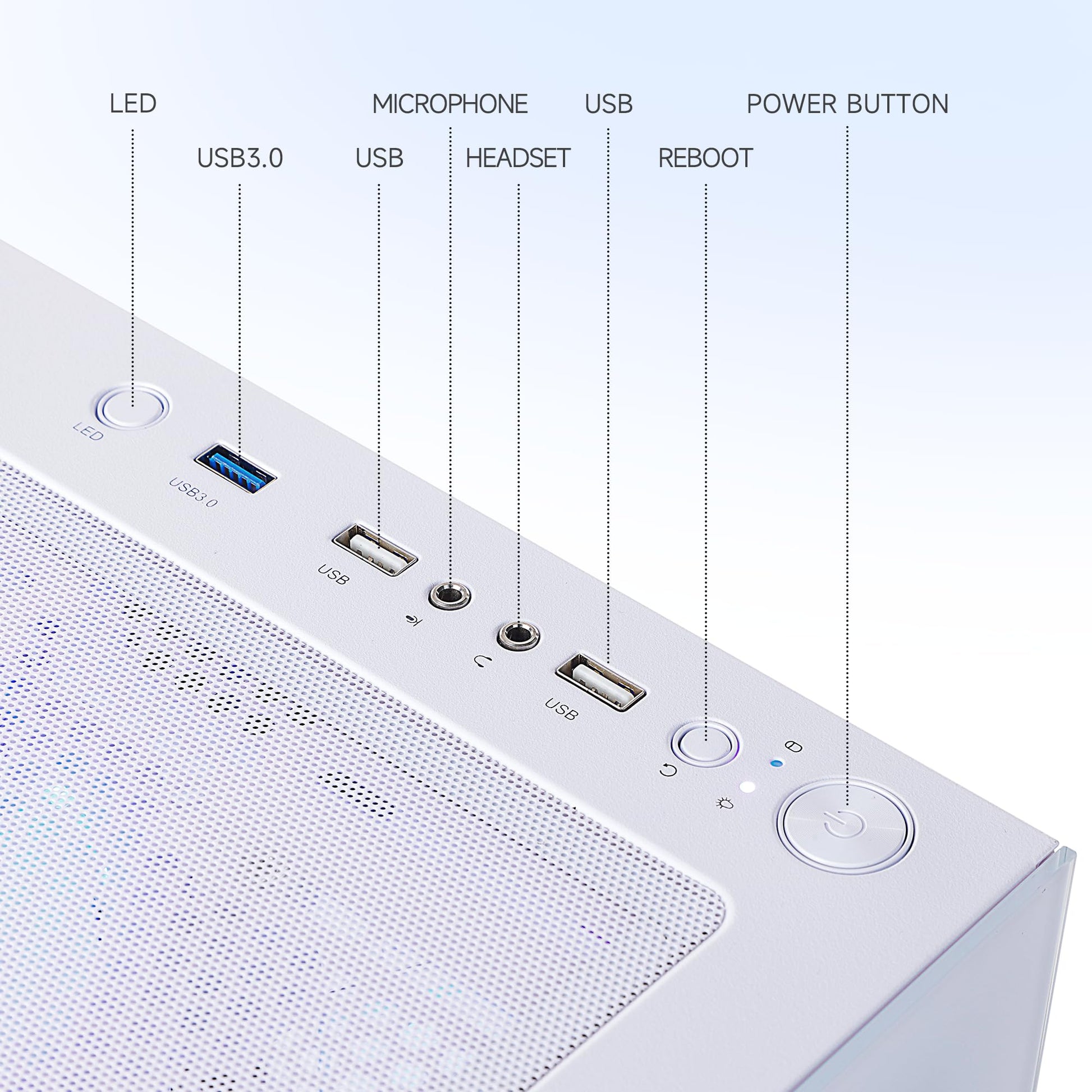 NINGMEI Soul Gaming PC Desktop,AMD Ryzen 5 5600GT 6 core 3.6GHz(up to 4.6GHz),AMD Radeon Vega 7 Graphics,16GB DDR4 RAM 3200MHz,1TB NVME SSD,550W PSU, Windows 11 Home 64-bit,White