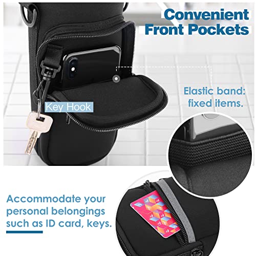Nuovoware Water Bottle Carrier Bag, 25oz/32oz Bottle Pouch Holder, Adjustable Shoulder Hand Strap 2 Pocket Sling Neoprene Sleeve Sports Water Bottle Accessories for Men/Women Hiking Travelling, Black