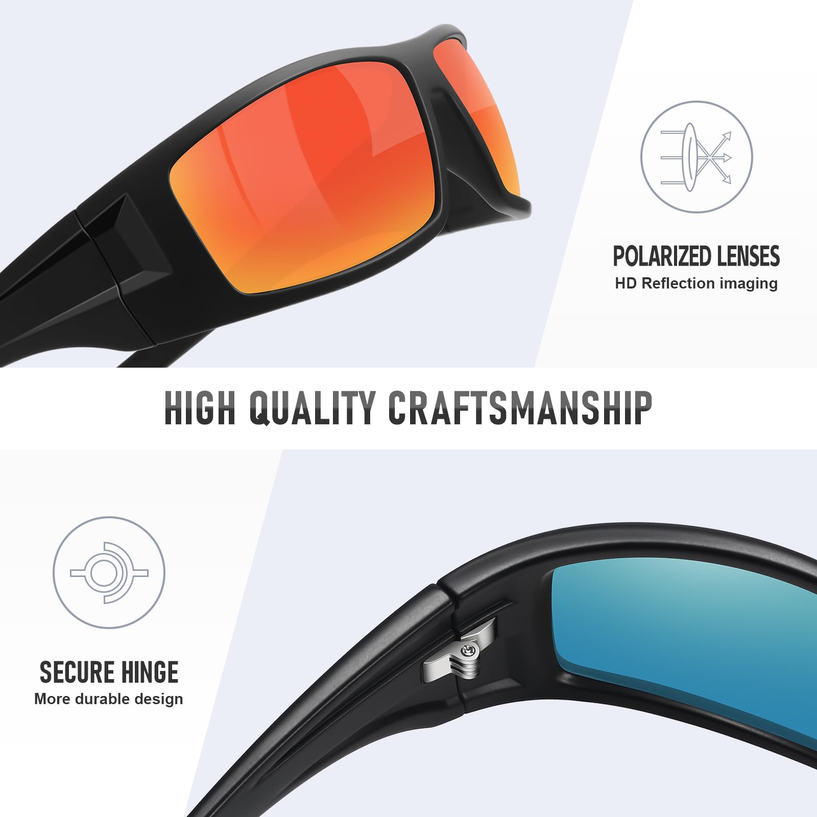 Ofwin Polarized Sports Sunglasses for Men Women Unbreakable Frame Cycling Fishing Wrap Around Sunglasses UV400 Protection Matte Black Frame/Red Mirror Lens