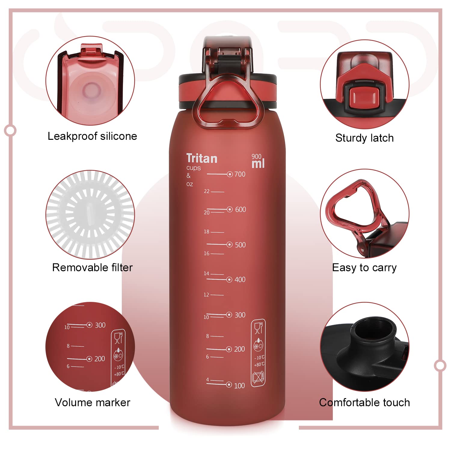 - 【BPA & TOXIN FREE】- Made of Tritan, the best safe and durable plastic for bottles. Non-toxic and eco-friendly, yet still do not put the bottle into the dishwasher.