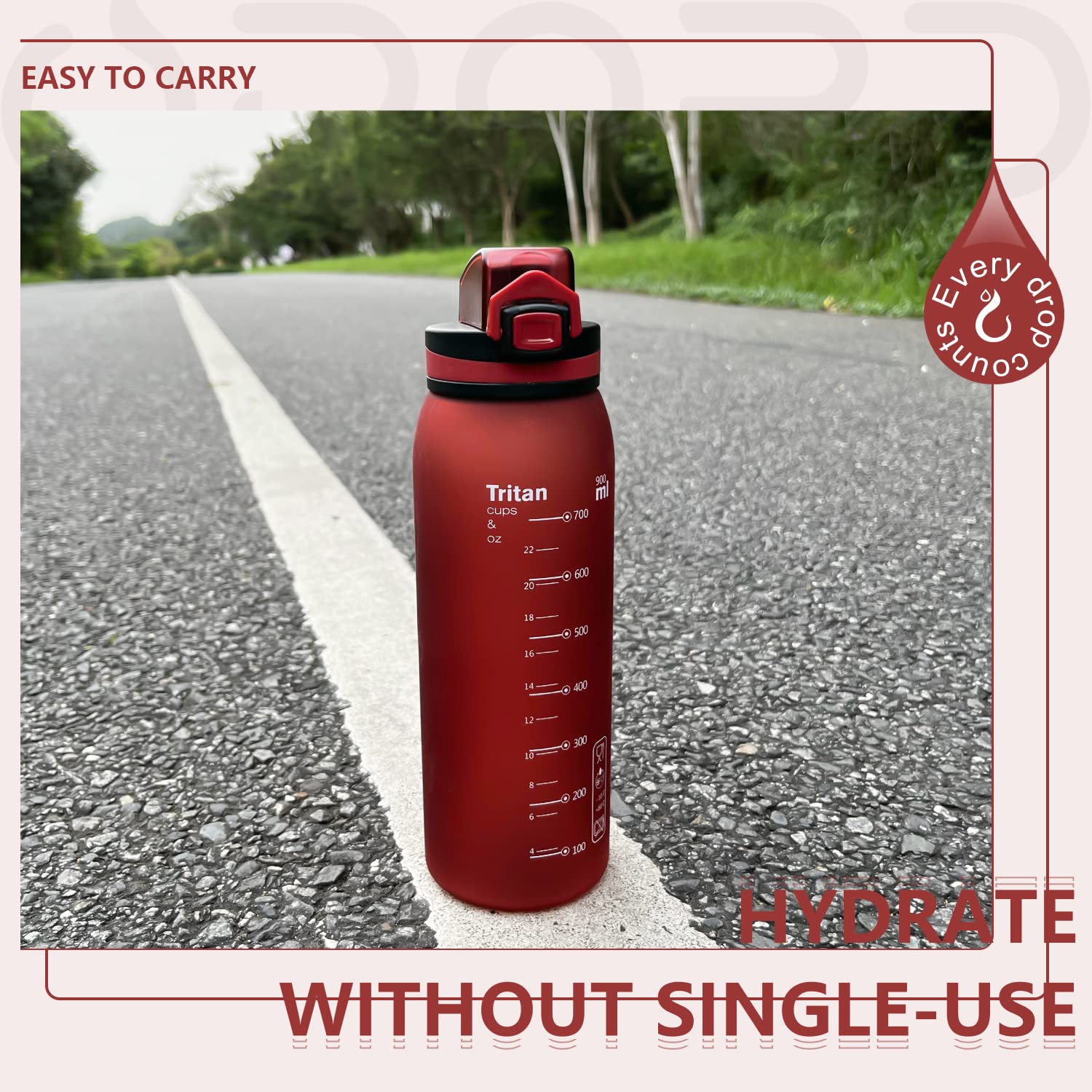 - 【CONVENIENT & COMFORTABLE GRAB】- This bottle with matte finish is stylish and beautiful, it is designed to be comfortably grabbed, and conveniently push open and close.