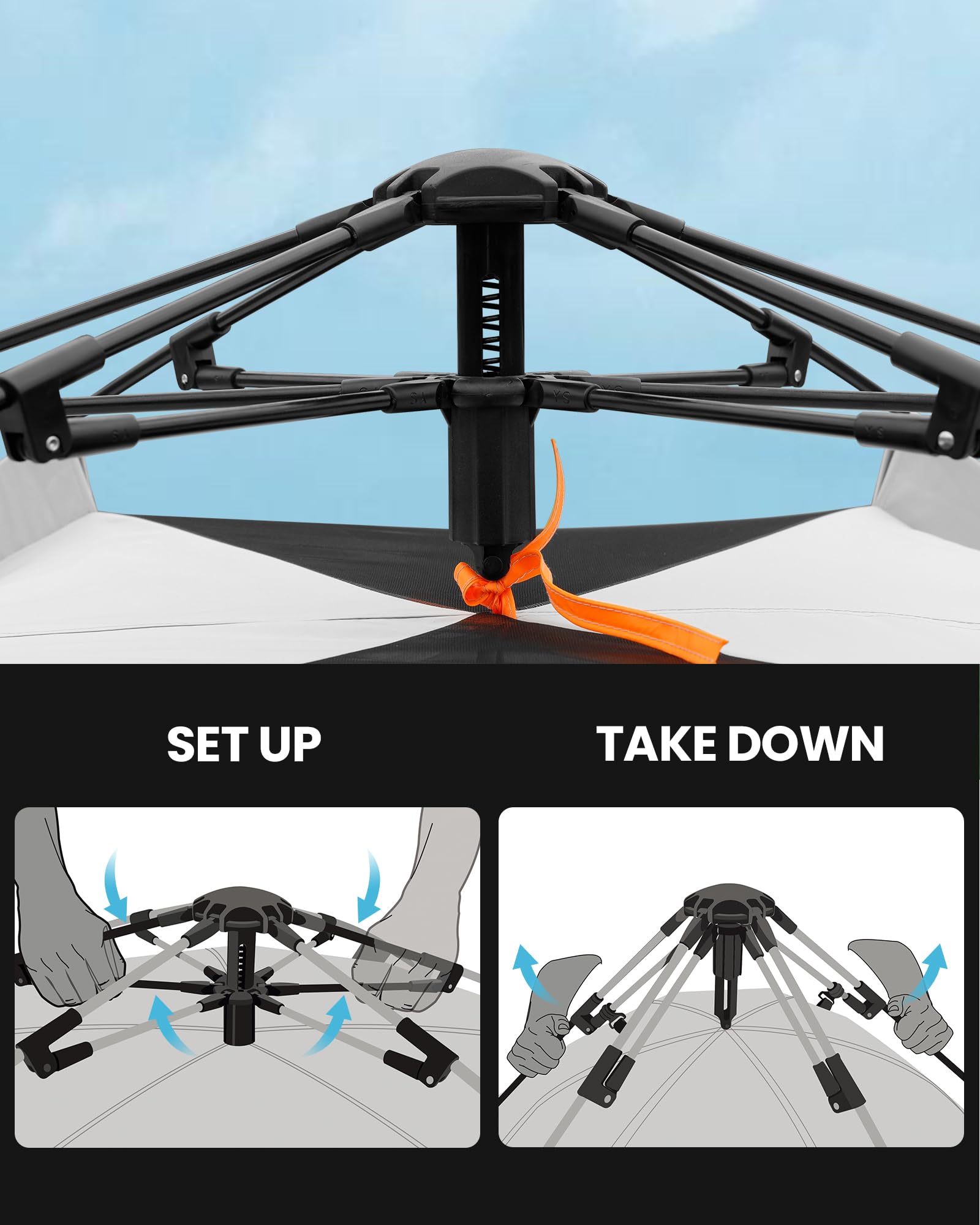 • Waterproof & Durable: This camping tent features a rainfly with a PU 5000mm coating and 210D Oxford fabric groundsheet, and precision-sealed seams to eliminating the possibility of water infiltration. This pop up tent ensures a dry and comfortable environment in all seasons and various weather conditions! This outstanding waterproof tent is the ideal choice for outdoor adventures and camping activities