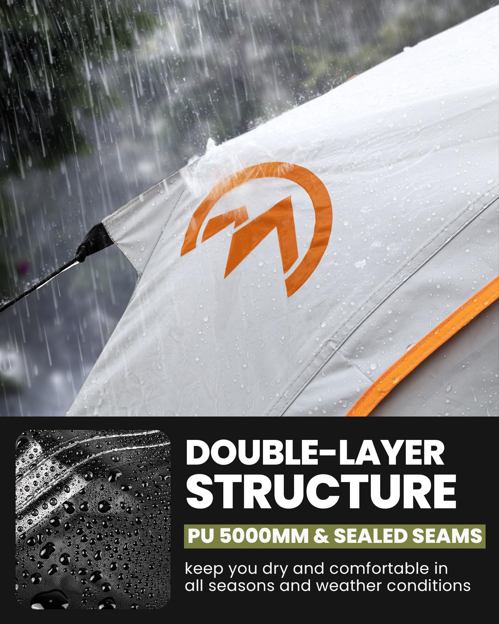 OutdoorMaster 2 Person Camping Tent, 4 Seasons Lightweight Backpacking Canopy, Waterproof and Weatherproof Sun Shelter, Double Layer Outdoor Cabana for Camping, Hiking and Mountaineering