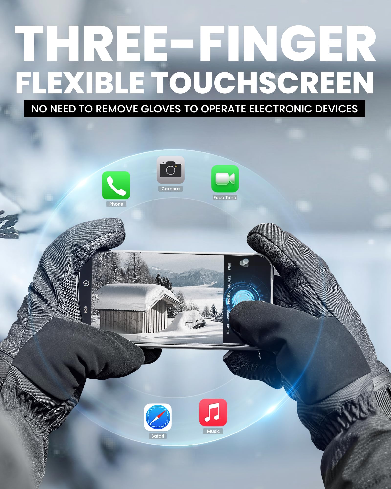 - Three-finger touchscreen: Soft and flexible leather provide three-finger touchscreen function for skiing gloves. You can easily access to your electric devices, using it during outdoor activities without taking off the gloves in the cold winter.