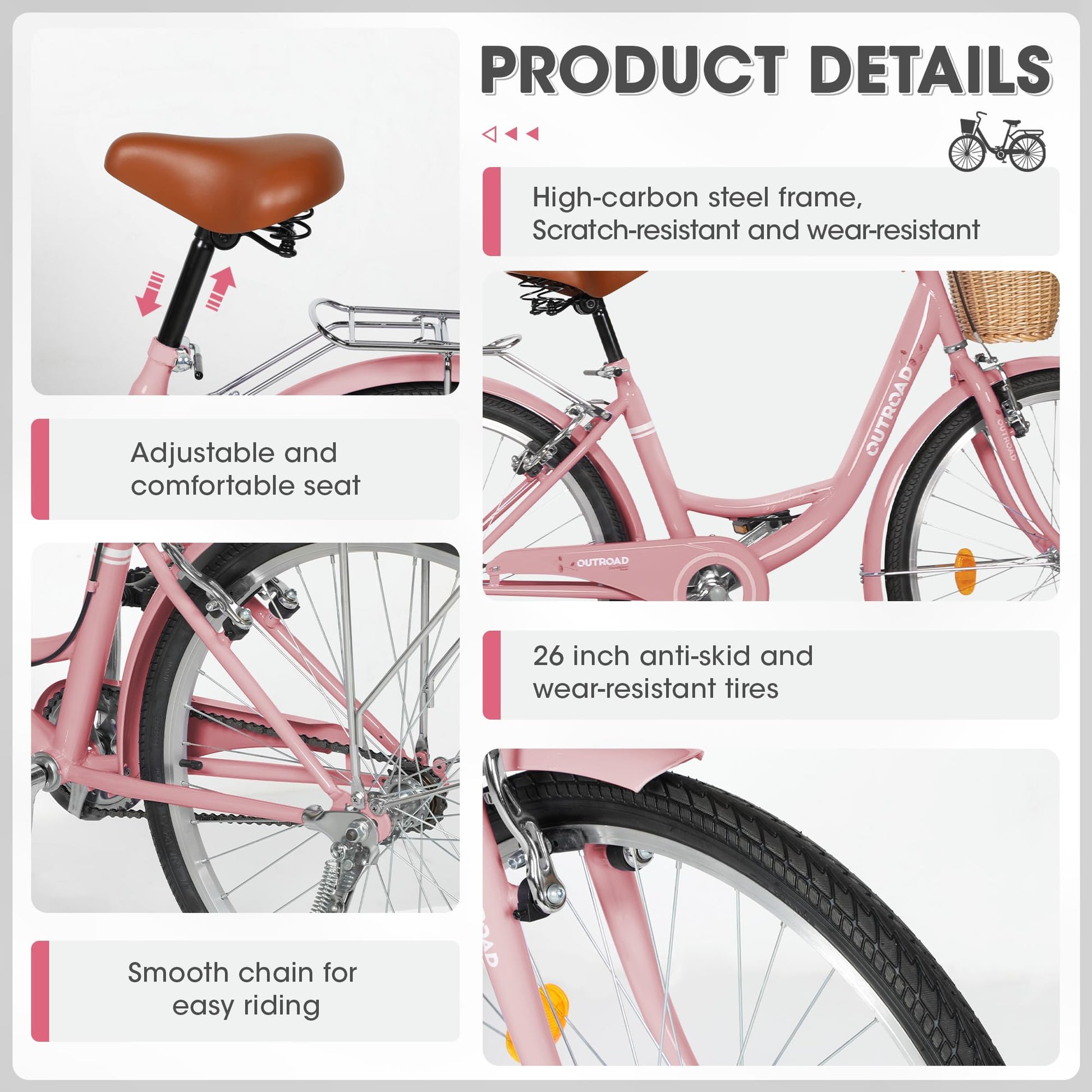 - 【Anti-slip And Wear-Resistant Tires】 The women's bike has non-slip wear-resistant tires, which ensure a smooth ride even in wet weather.