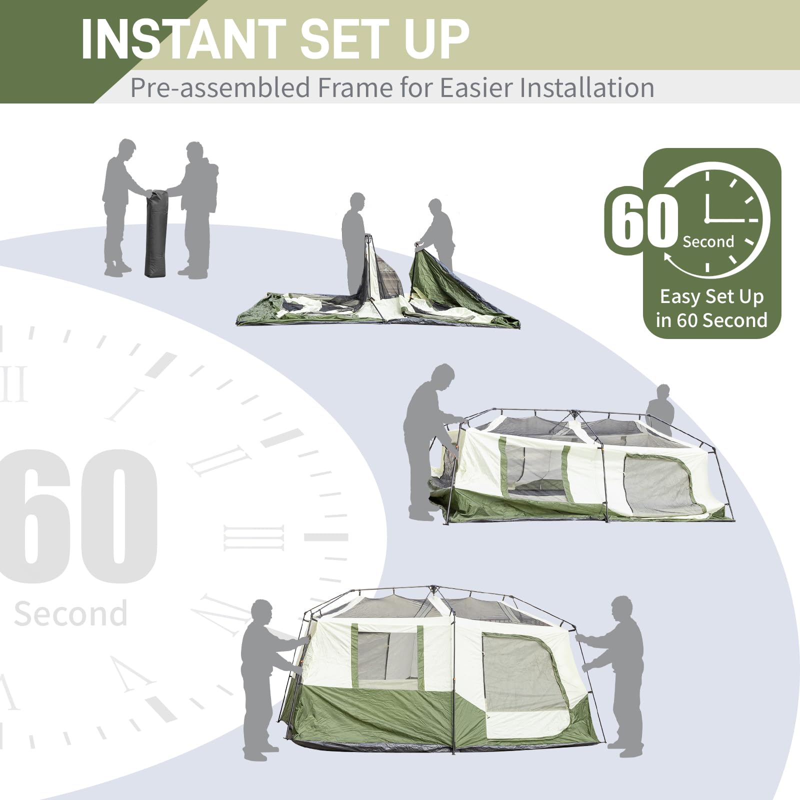 - Easy Installation: The tent for camping comes pre-attached to the frame poles, requiring you to simply unfold and secure it, without the need for extra tools, allowing for installation in 1-3 minutes. The instant tent comes with a portable bag weighing only 18.9 lbs, allowing you to take the tent anywhere.