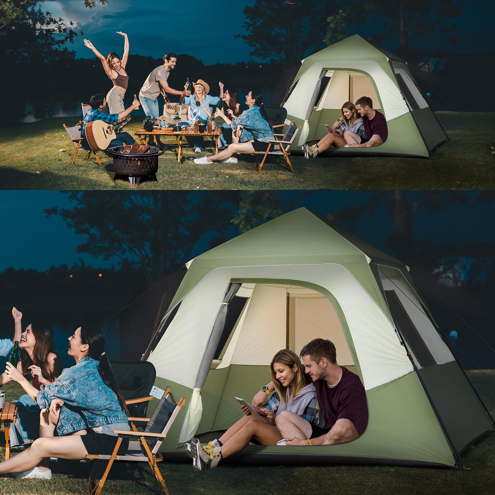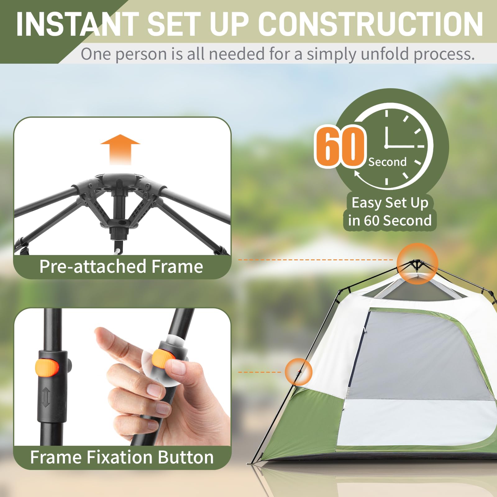 Outvita Camping Tent - 4/6 Person Waterproof, Portable Backpacking With Instant Setup, Double Fabric for Family Camping, Hiking, Outdoor - Set Up Within 60 Seconds, Army Green