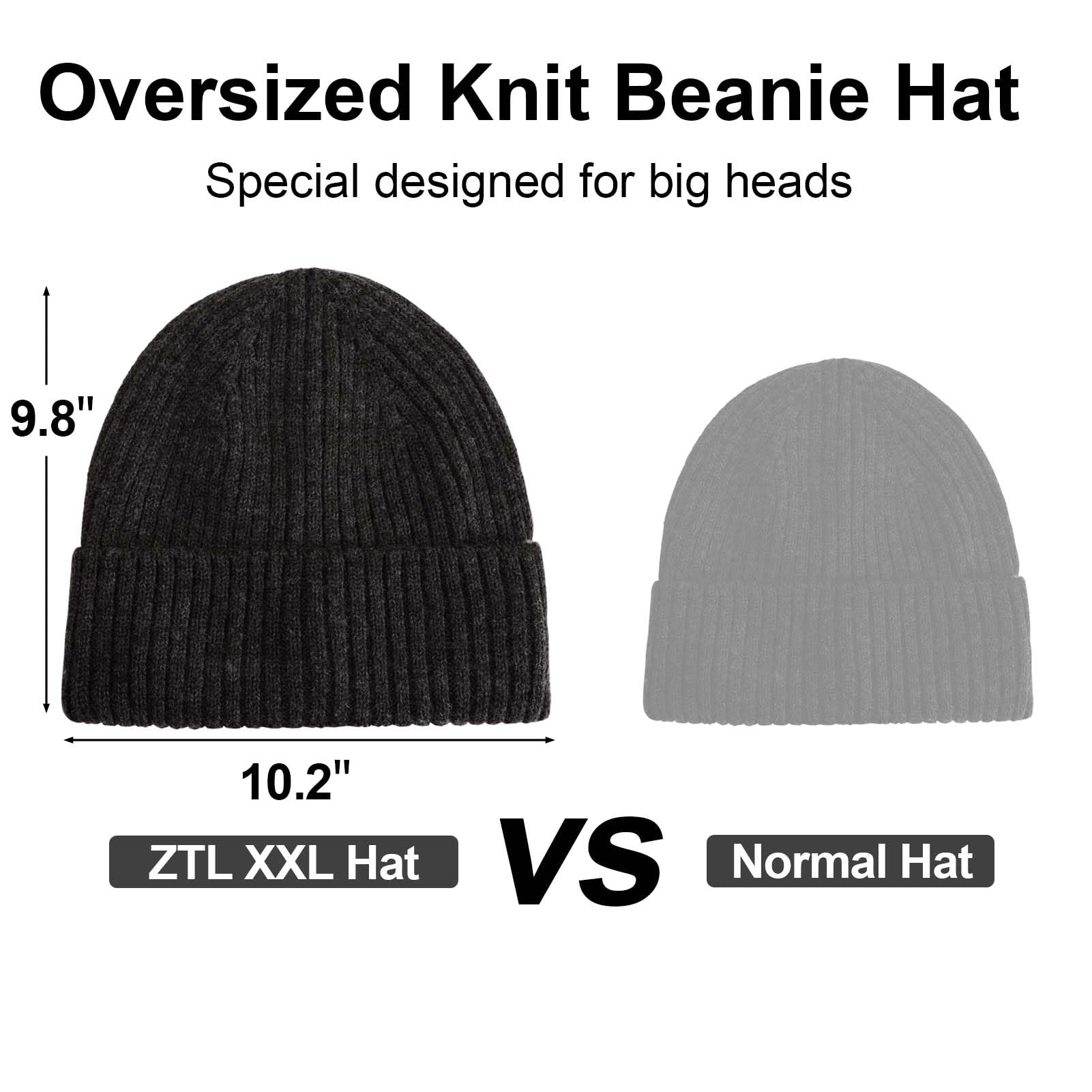 - XL/XXL Beanie Hats: our oversize beanie hats are specially designed for big heads, XL-XXL Size fits big heads 24'-26'(7 5/8 - 8 1/4). ZTL XL/XXL Beanie Cap provides excellent temperature control and wearability, best choice for large head people for cold weather.