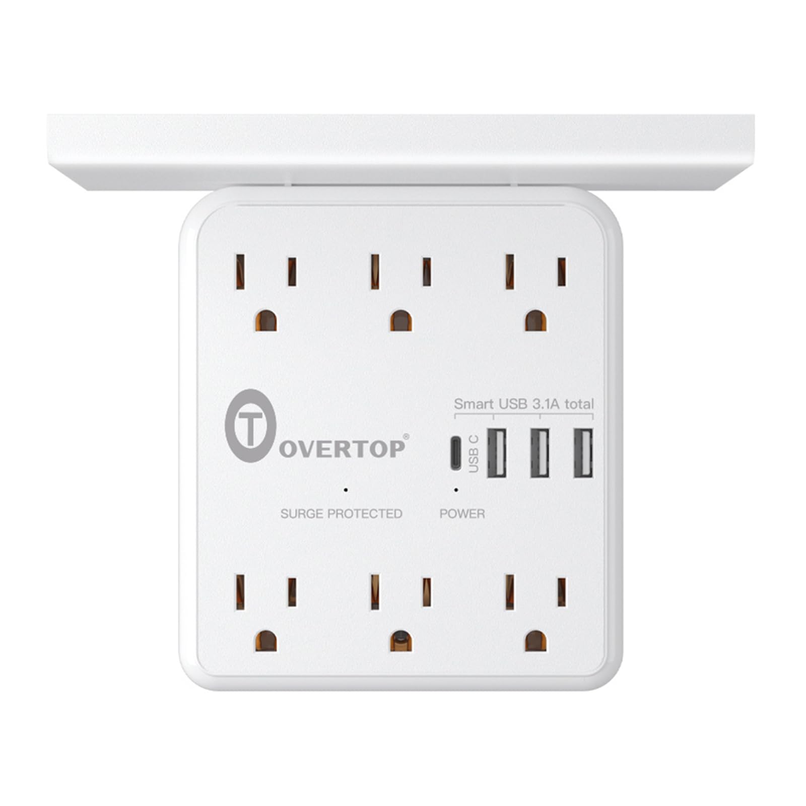 Overtop Power Charger with Shelf, Wall Outlet Extender Surge Protector with 6 AC Outlets, 4 USB Ports(1 USB C) Plug Expander Charger Shelf with Storage for Home, Dorm