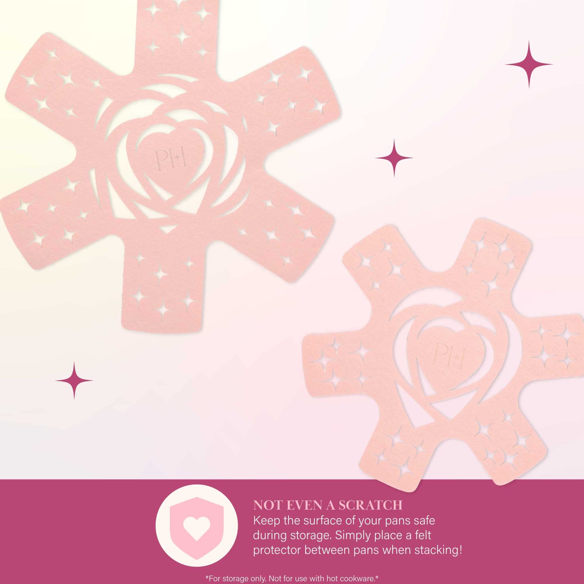 • ICONIC POTS AND PANS SET INCLUDES: 9.5-Inch Fry Pan, 2-Quart Sauce Pan with Lid , 3.5-Quart Saute Pan with Lid, 5-Quart Stock Pot with Lid, and 3 Felt Protectors. Suitable for use with all stove tops: electric, glass, gas and induction. A perfect match for Paris Hilton's kitchen utensil set.