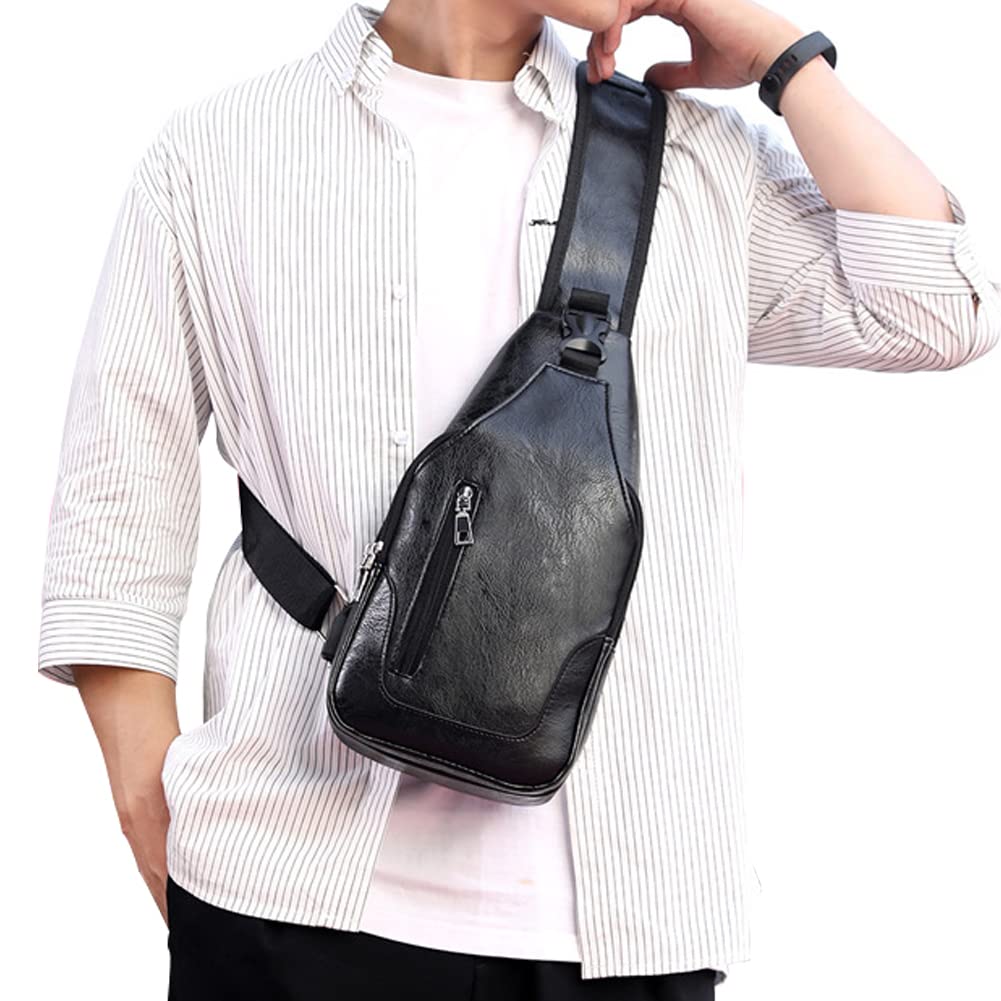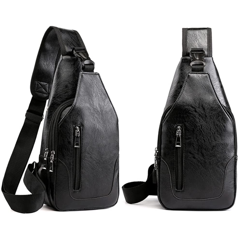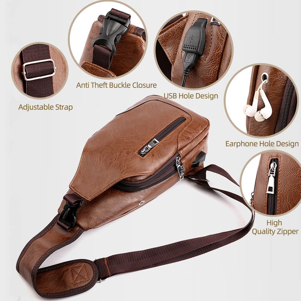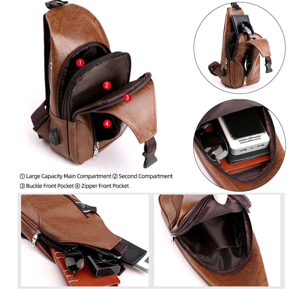 - UPGRADED DESIGN - Compared with other ordinary oversized leather sling bag daypacks, our leather chest bag adopts an upgraded design: reinforced strap, flawless, durable, and fashion hardware zippers, multiple organizations, and perfect workmanship make it your best choice! This is great to throw across your body and go. Our leather USB sling backpack bag is made of high-quality leather, durable, strong, sturdy, comfortable, and soft materials.