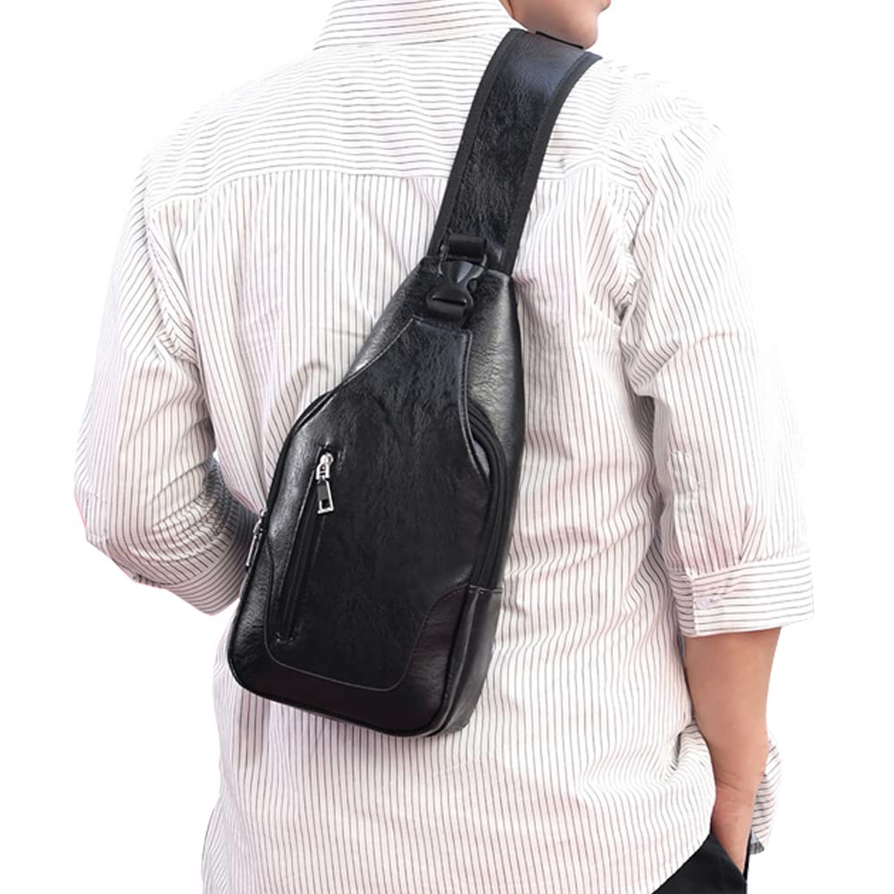 - ADJUSTABLE PADDED BREATHABLE STRAPS - The breathable straps and back of the leather sling bag chest crossbody backpack for men are padded with thick foam, providing a comfortable carrying experience for your shoulders, comfortable back and straps system, easy travel, no burden! The straps are strengthened with strong and sturdy stitching for durable use. Adjustable shoulder straps for the different heights. Hardware buckles and reinforced triangle straps enhance the backpack bearing capacity.