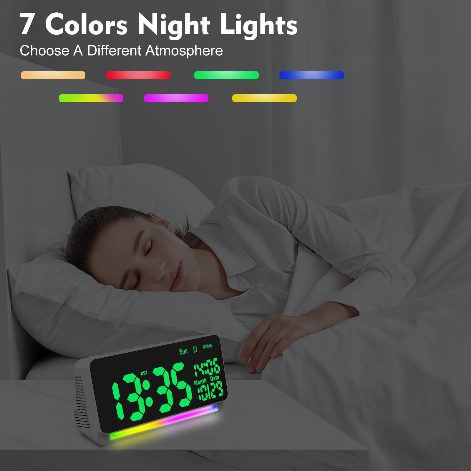 - RGB Digital Display: The desktop alarm clock's digital display is available in 6 regular colors and 4 dynamic RGB colors, allowing you to choose a different color for the numbers according to your preference and needs.