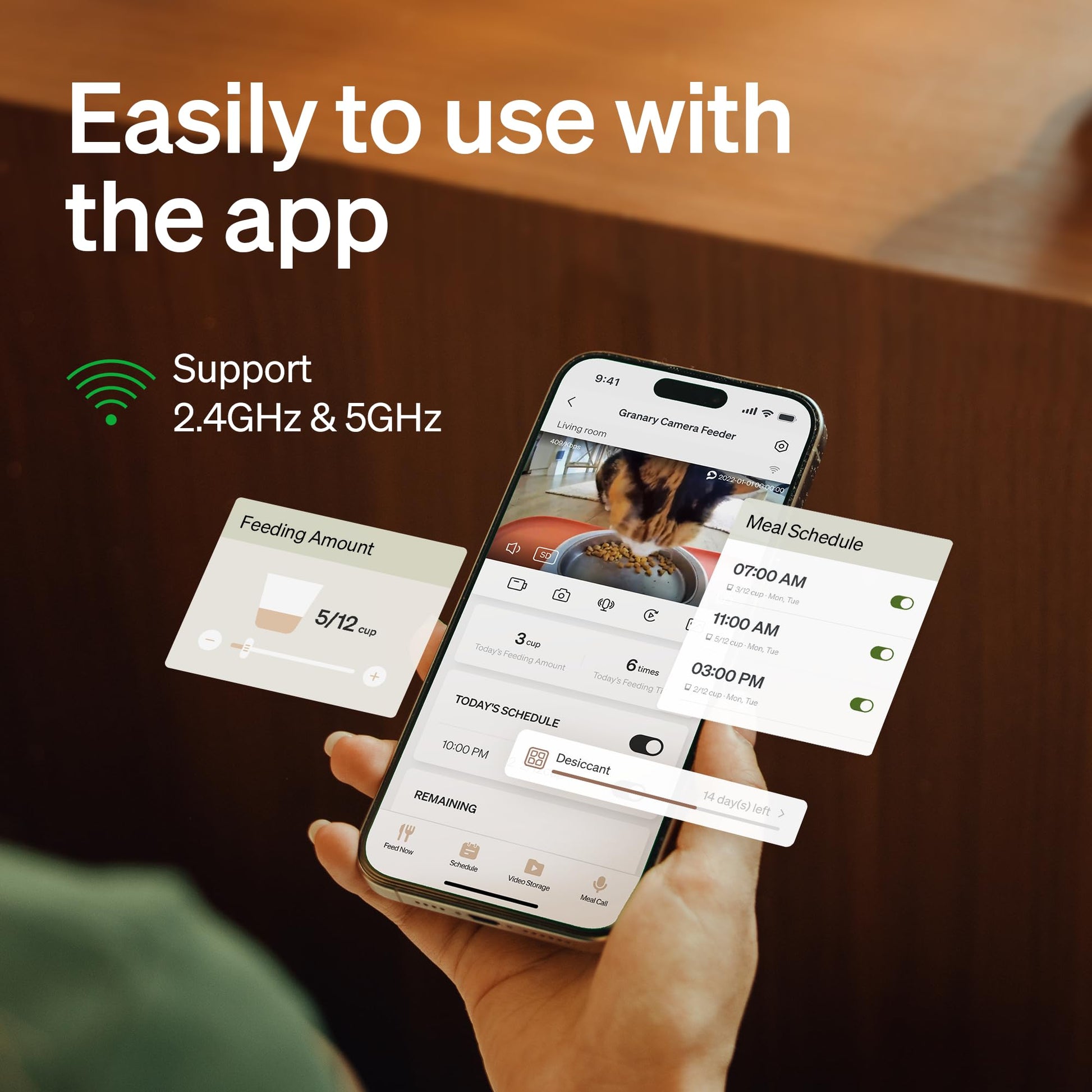 - Smart APP Control: PETLIBRO automatic cat feeder is 5GHz and 2.4GHz WiFi-enabled, allowing you to program and monitor your pet's meals anywhere anytime through the PETLIBRO App for iOS and Android phones. You can set a feeding plan, and schedule feeding time, up to 10 meals per day with 1-50 portions per meal. Check the feeding logs to rest assured your pet gets fed on the set schedule. The feeder can be controlled from multiple family members' smartphones.Operating Temperature: 0°C-55°C / 32°F-131°F..Operating temperature: 0°C - 55°C/32°F-131°F