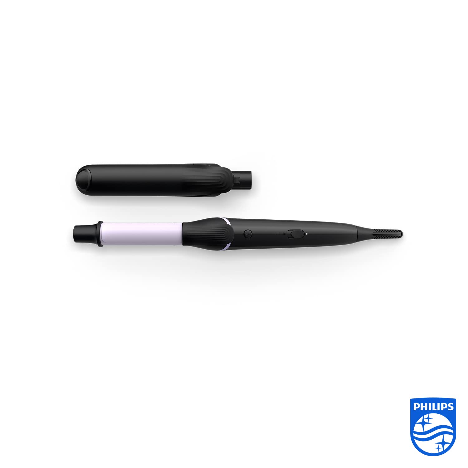 Details: Click on your style 10+ looks with style guide Every day a different look! From to perfectly polished, straight and curly hair to updos and more, create more than 10 styles with the new Philips Multi-Styler with style guide. Beautifully styled hair 80mm straightener for sleek results 25mm curling barrel for tight to loose curls Style guide and 3 useful hair accessories for 10+ styles Professional high heat for perfect results Ease of use OneClick Technology for quick and easy attachment changing Fast heat up time, ready to use in 60 sec Cool tip for easier and safer use 1.8 m power cord Swivel cord to prevent tangled wires Care for your hair Protective ceramic coating Straightener for sleek results 80mm straightening plates for perfect sleek results. Curler for fabulous curls 25mm curling barrel for perfect tight to loose curls. 3 versatile hair accessories Including a style guide to create 10+ styles, 2 elastic bands for easy hairstyling and a hair loop to experiment with your style. OneClick release technology Changing attachments has never been quicker or easier with the muti-styler’s OneClick design. Simply click on and push the button, holding the cool tip, to release. Up to 210°C temperature This high temperature enables you to change the shape of your hair and gives you that perfect look you want. Fast heat up time This styler has a fast heat up time, being ready to use in 60 seconds. Gentle on your hair Protective ceramic coating ensures even heat distribution and less hair damage for shiny and soft hair. Features Coating of heated parts: Ceramic Barrel diameter: 25 mm Straightener size: 30x80 mm Cool tip Swivel cord Storage hook OneClick release technology Technical specifications Styling temperature: Up to 210°C Heater type: PTC Heating time: 60 sec Cable length: 1.8 m Plate size: Curler 90 mm Voltage: 110-240V