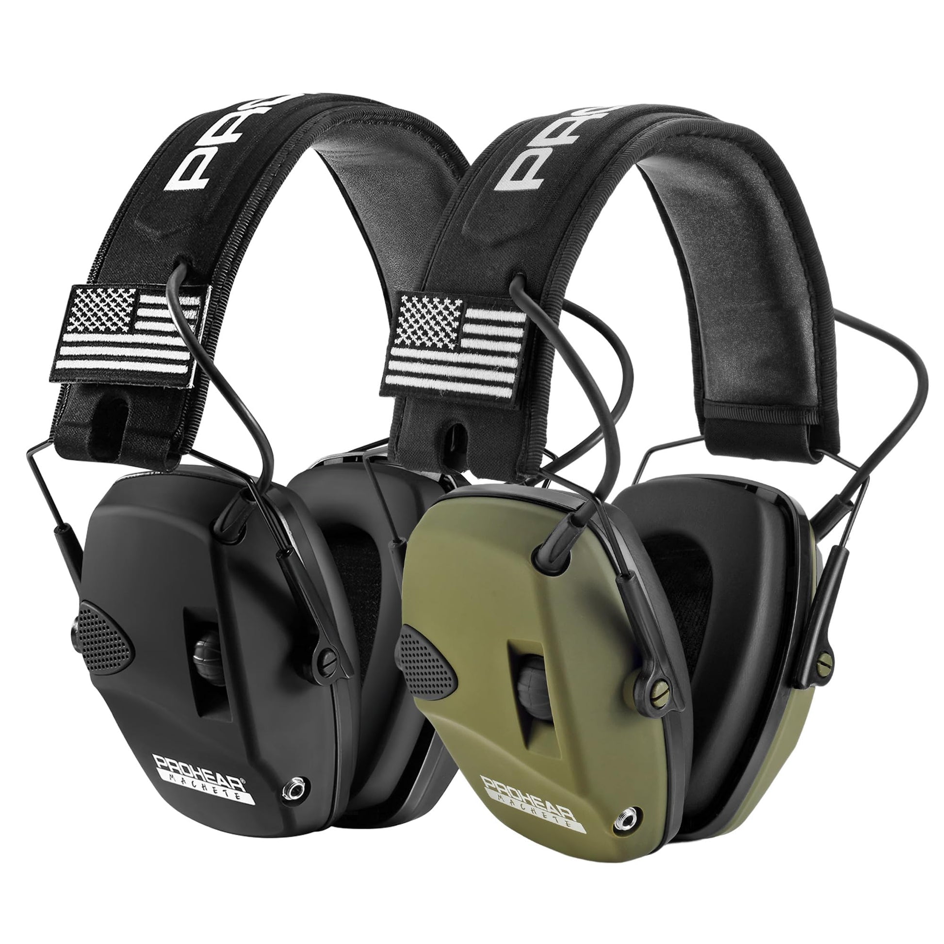 PROHEAR 2 Pack Electronic Ear Protections for Shooting with 4X Sound Amplification, Gun Range Hearing Protection Muffs, NRR 23dB Noise Reduction Headphones for Hunting, Black and Green