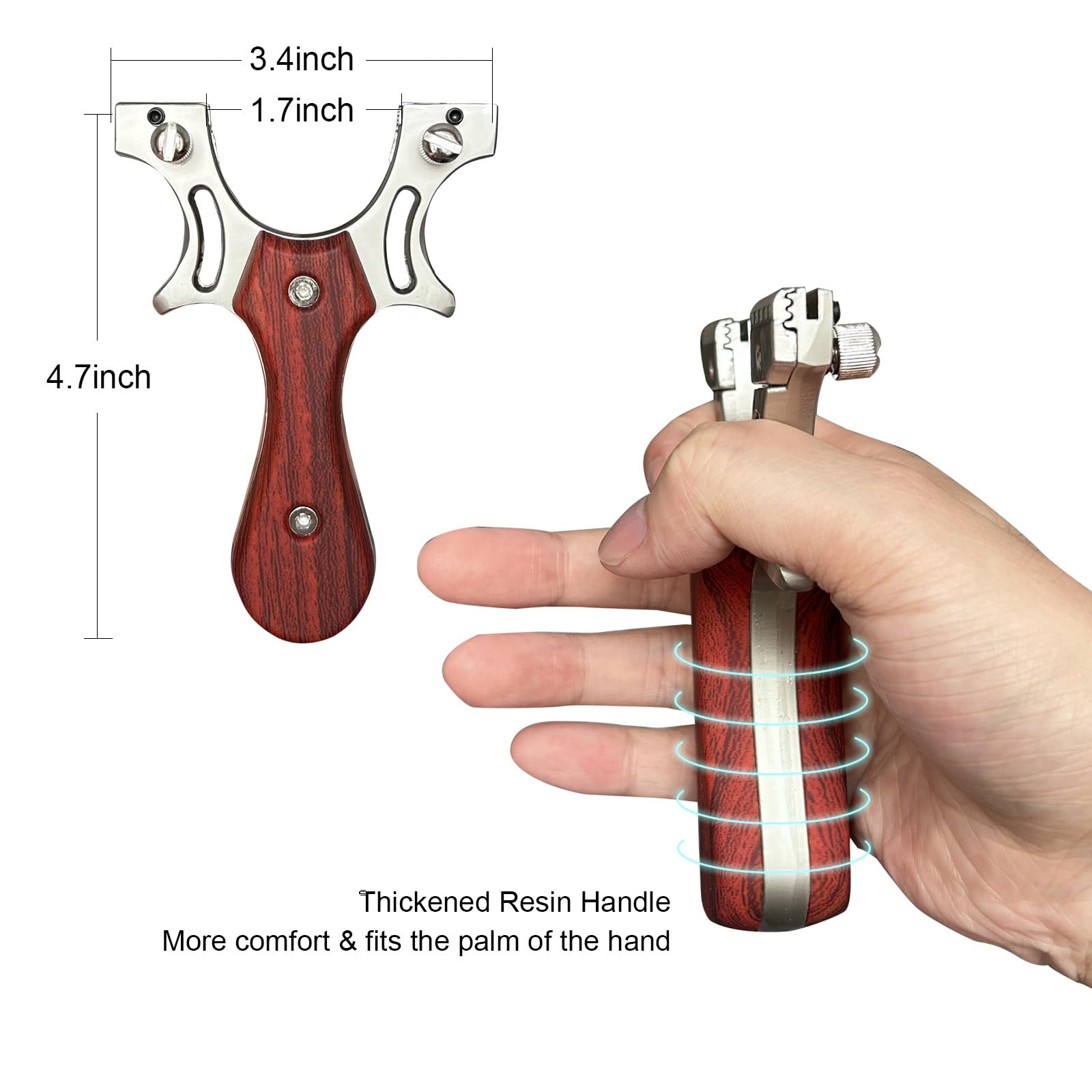 - Ergonomic Handle:The hunting shooting slingshots handle is made of aluminum alloy.Resin patches are designed on both sides to increase friction.
