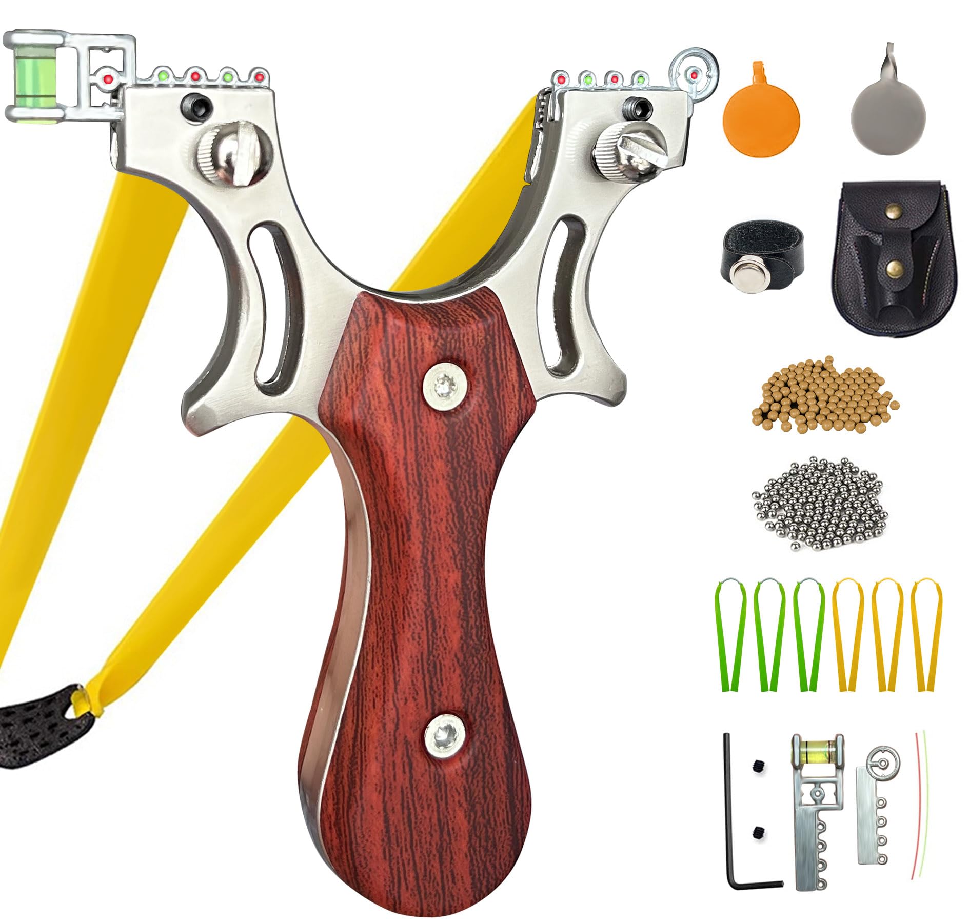 - Tactical Slingshot:The slingshot comes with strong replacement bands of different thicknesses.Stainless steel sights help hobbyists and beginners to practice and aim accurately. complete shooting in different scenes.