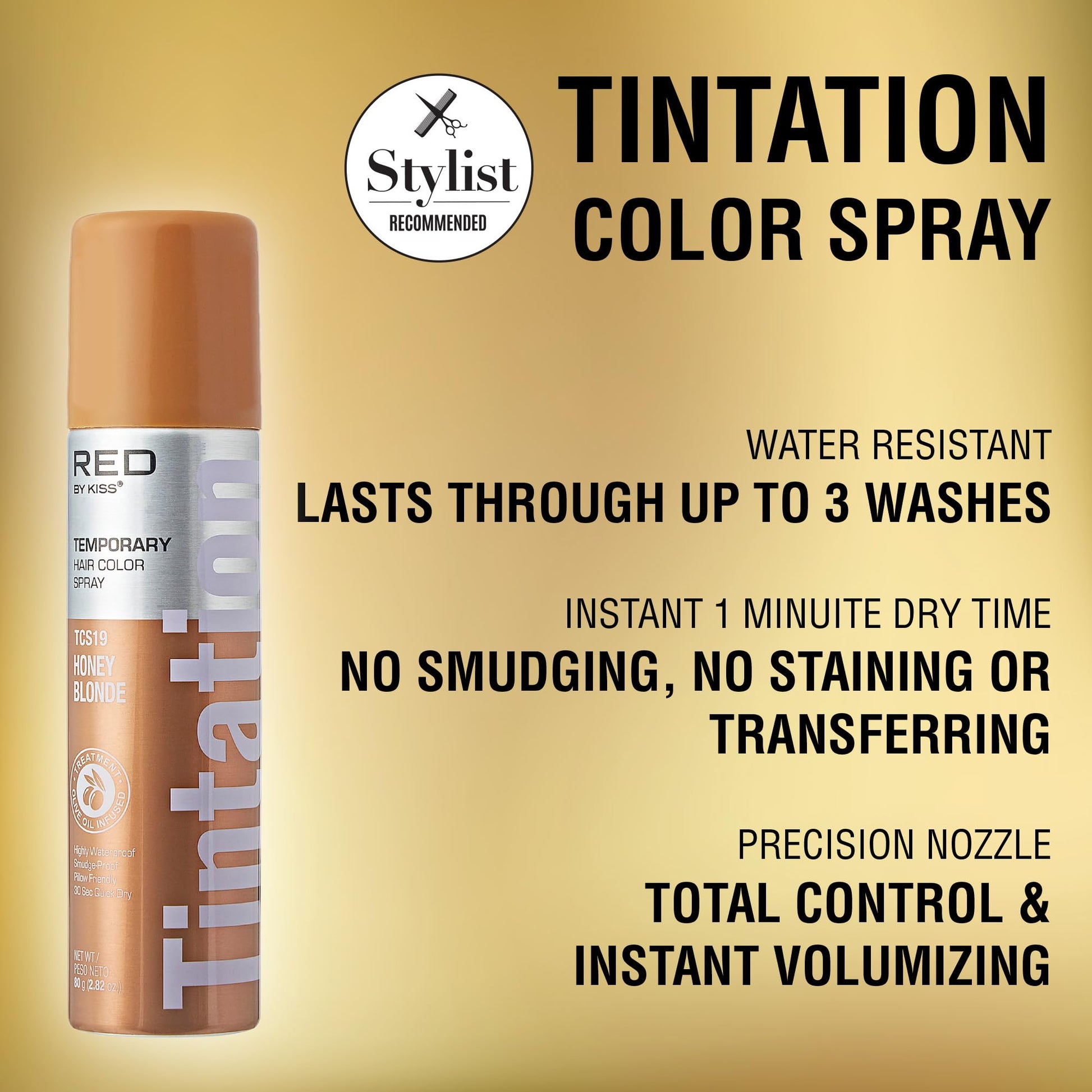 Red by Kiss Tintation Temporary Hair Color Spray, Instant Gray Root Touch Up Coverage, Water-Resistant & Smudge-Proof, Easy Wash Out, Barber & Hairline Touch-Up, Quick-Dry (Honey Blonde, 2.82 oz)