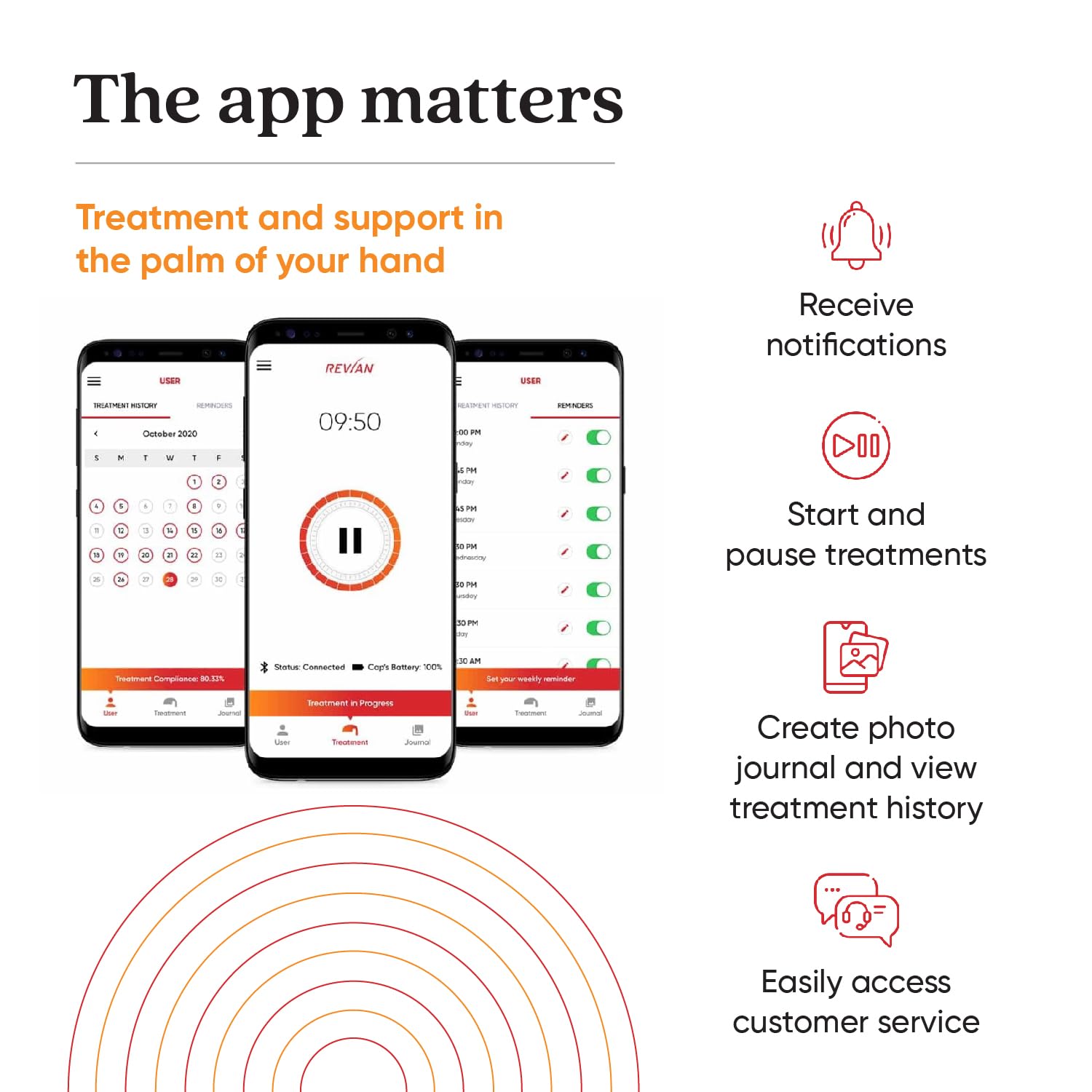 - WHY THE APP MATTERS: REVIAN’s app allows patients to start/stop treatments, view history and compliance, receive treatment notifications, access customer service, and create photo progress journal. Free REVIAN App download in Apple App Store or Google Play (iOS and Android) - Mobile device NOT INCLUDED but required to operate App and Cap (iOS versions 11.0 or higher and/or Android 9.0 (Pie) or higher. Internet or wireless network connectivity required
