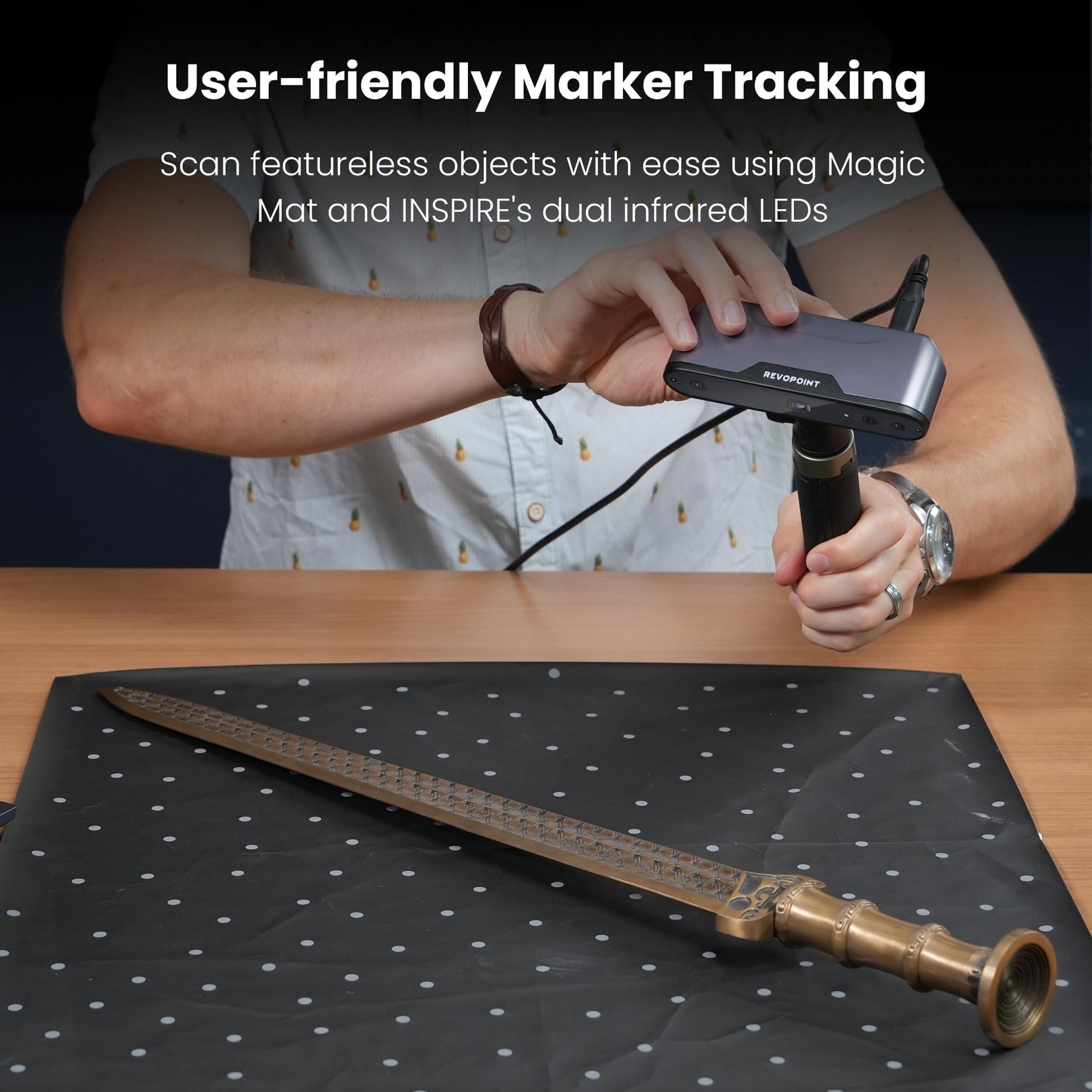 - High-Accuracy 3D Scans: Efficiently create detailed 3D models for multiple applications with the Revopoint INSPIRE's 0.2 mm accuracy and a wide 308mm x 225mm (at 500 mm) single capture area.
