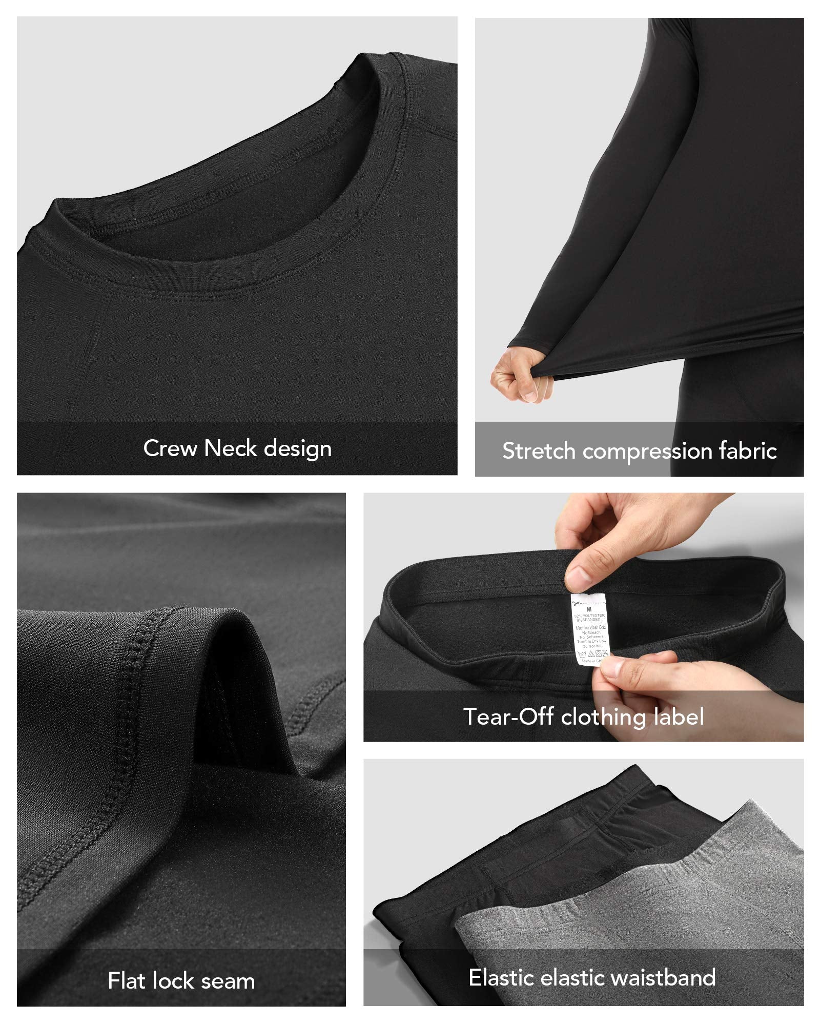 - [Compression Support & Comfortble] Experience unparalleled comfort and support with our form-fitting thermal set. It conforms to your body, allowing for a snug fit and unrestricted movement. The Four-Way stretch fabric with strong seams is offering full mobility and anti-squatting design ensures ultimate comfort and complete freedom during all your active lifestyle.