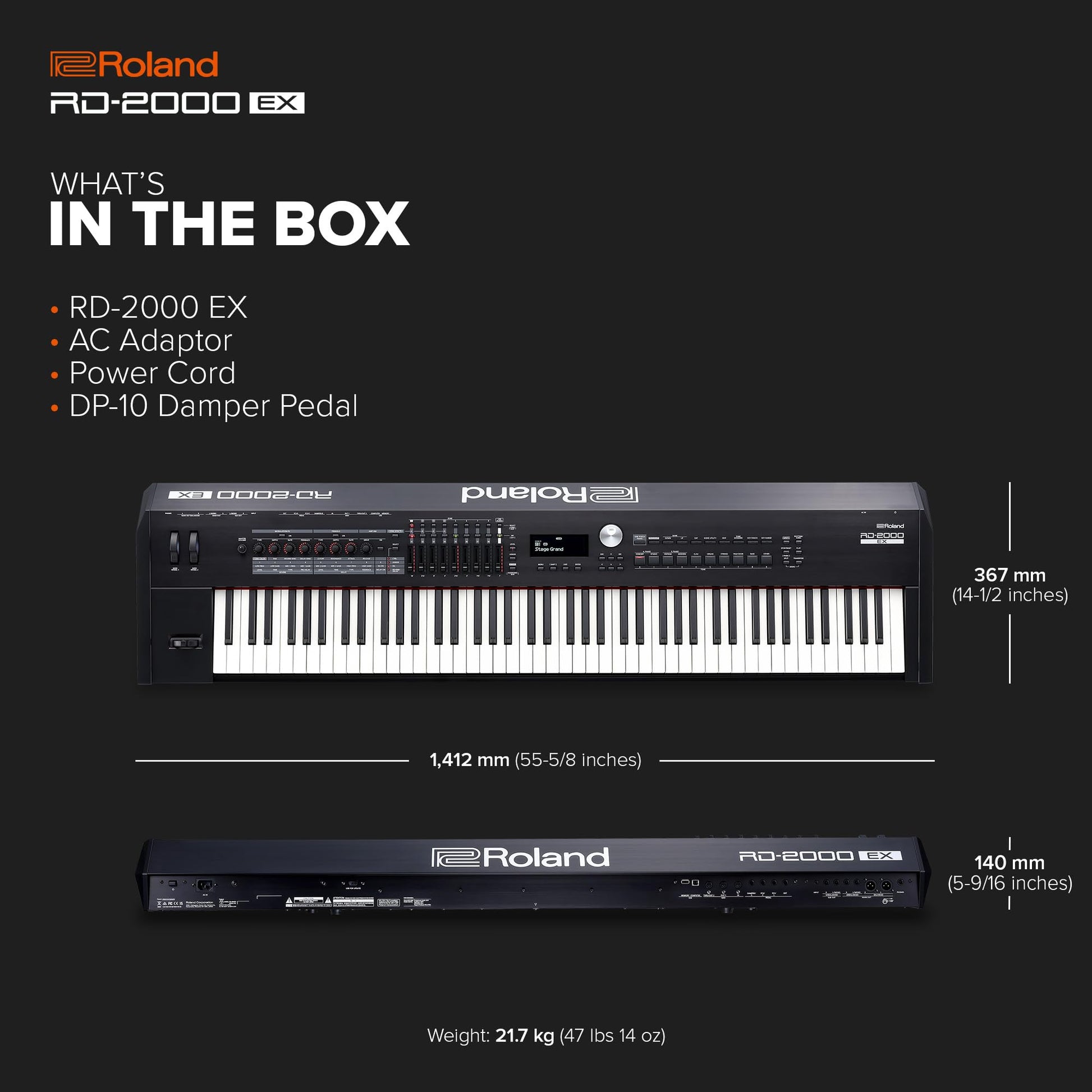 Details: The RD-2000 EX delivers the ultimate RD experience, fusing Roland’s top piano technologies with a rich array of modern creative tools. This powerful and inspiring instrument is the most complete stage piano solution available, offering dual sound engines, two pre-installed V-Piano Expansions, premium playability, and advanced controller features for professional performers.
