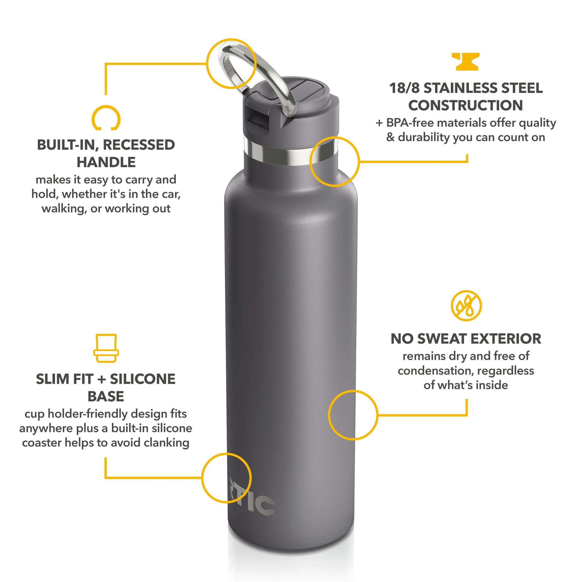 RTIC 20oz Journey Bottle Metal Stainless Steel Vacuum Insulated, BPA Free, Reusable, for Water, Hot and Cold Drinks, Travel, Sports, Camping, Graphite