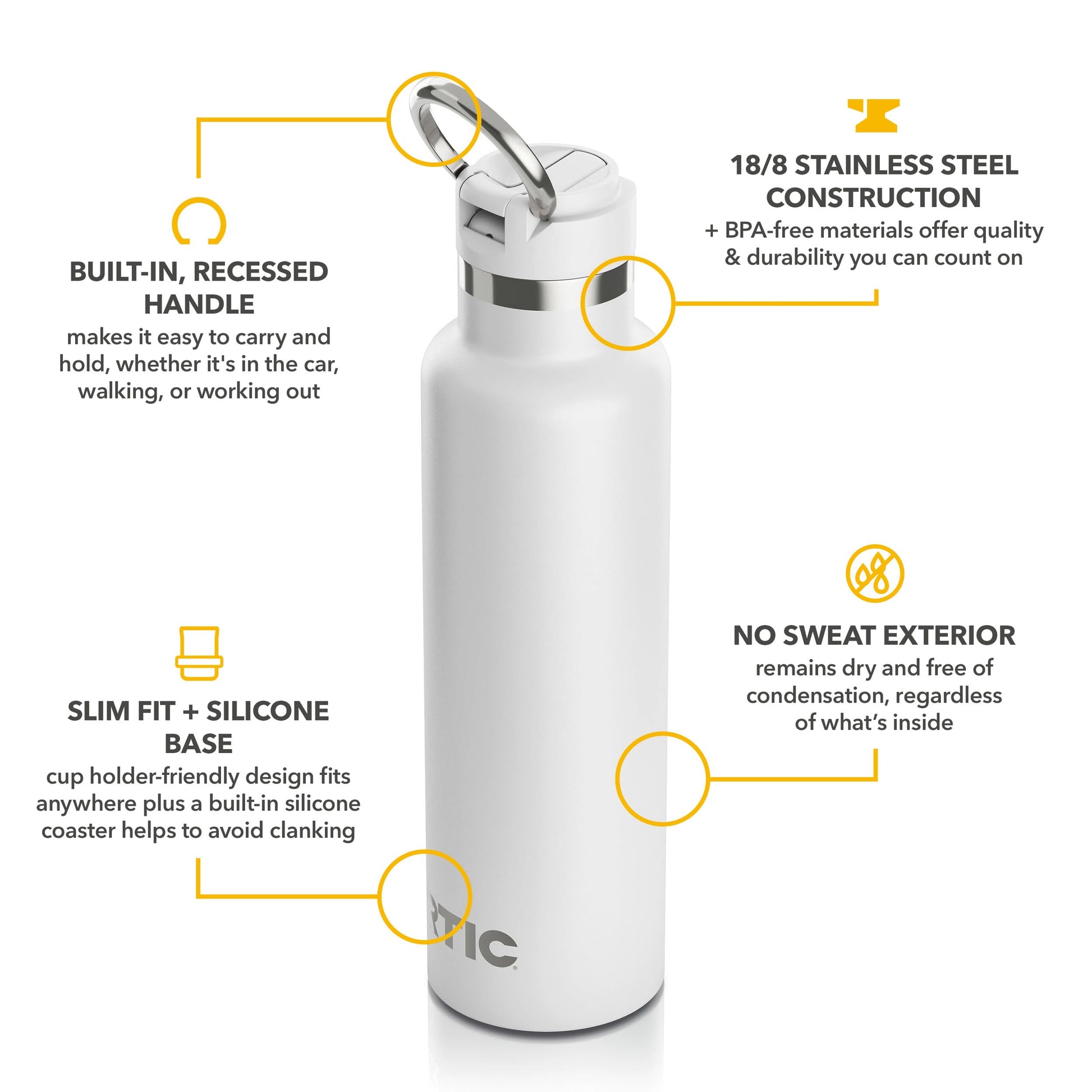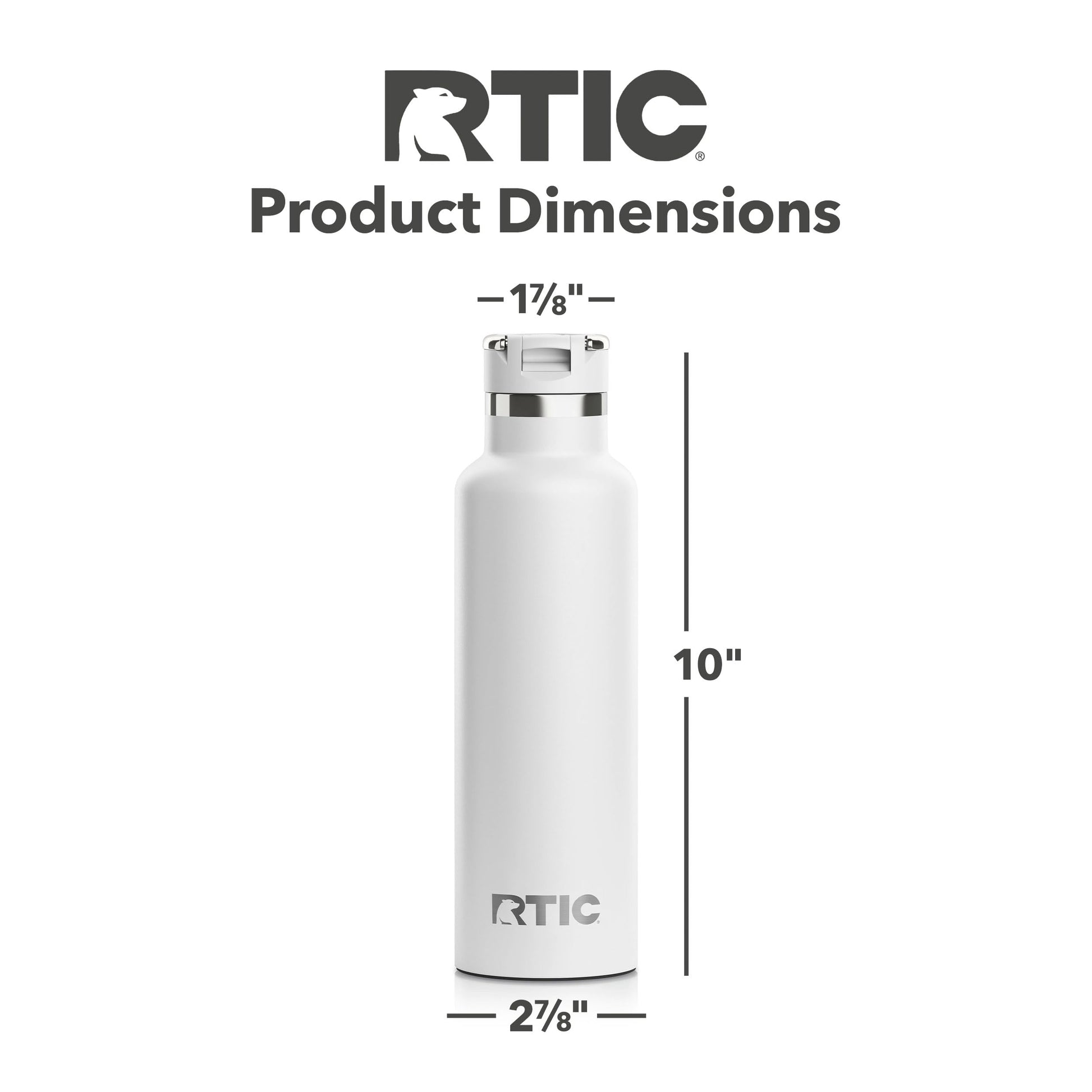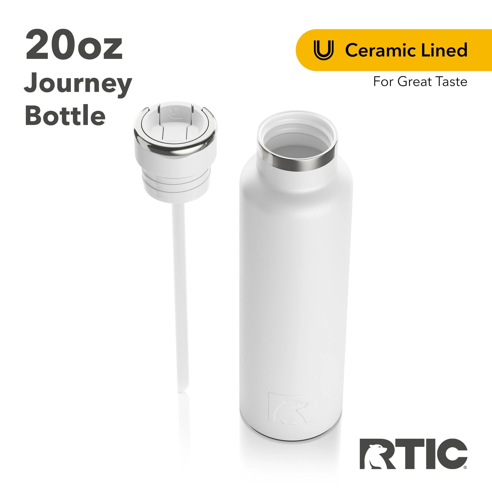 RTIC 20oz Journey Bottle Metal Stainless Steel Vacuum Insulated, BPA Free, Reusable, for Water, Hot and Cold Drinks, Travel, Sports, Camping, White