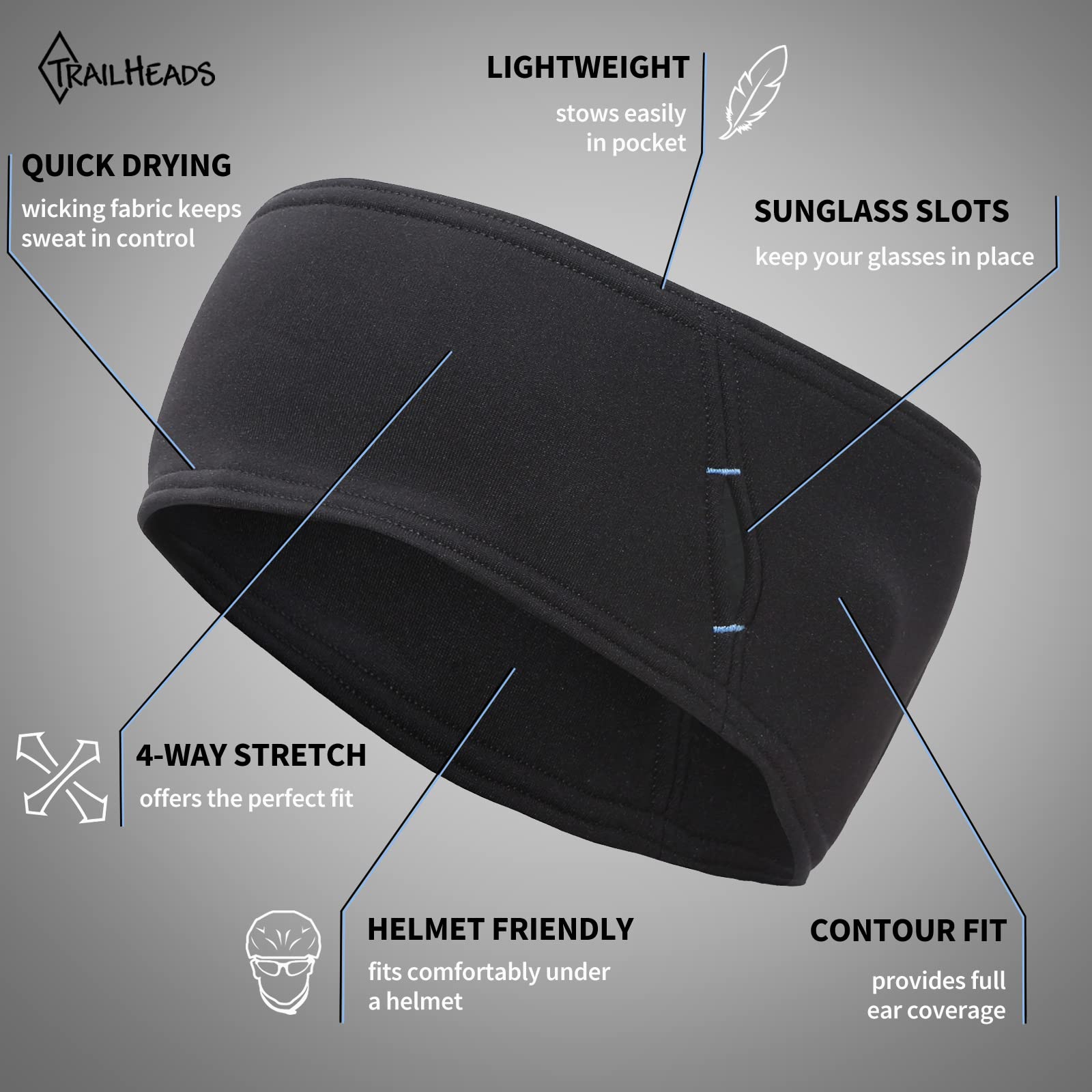 - SUNGLASS SLOTS HEADBAND - Slots in the earband allow you to wear your sunglasses on the run and still protect your ears from the cold.