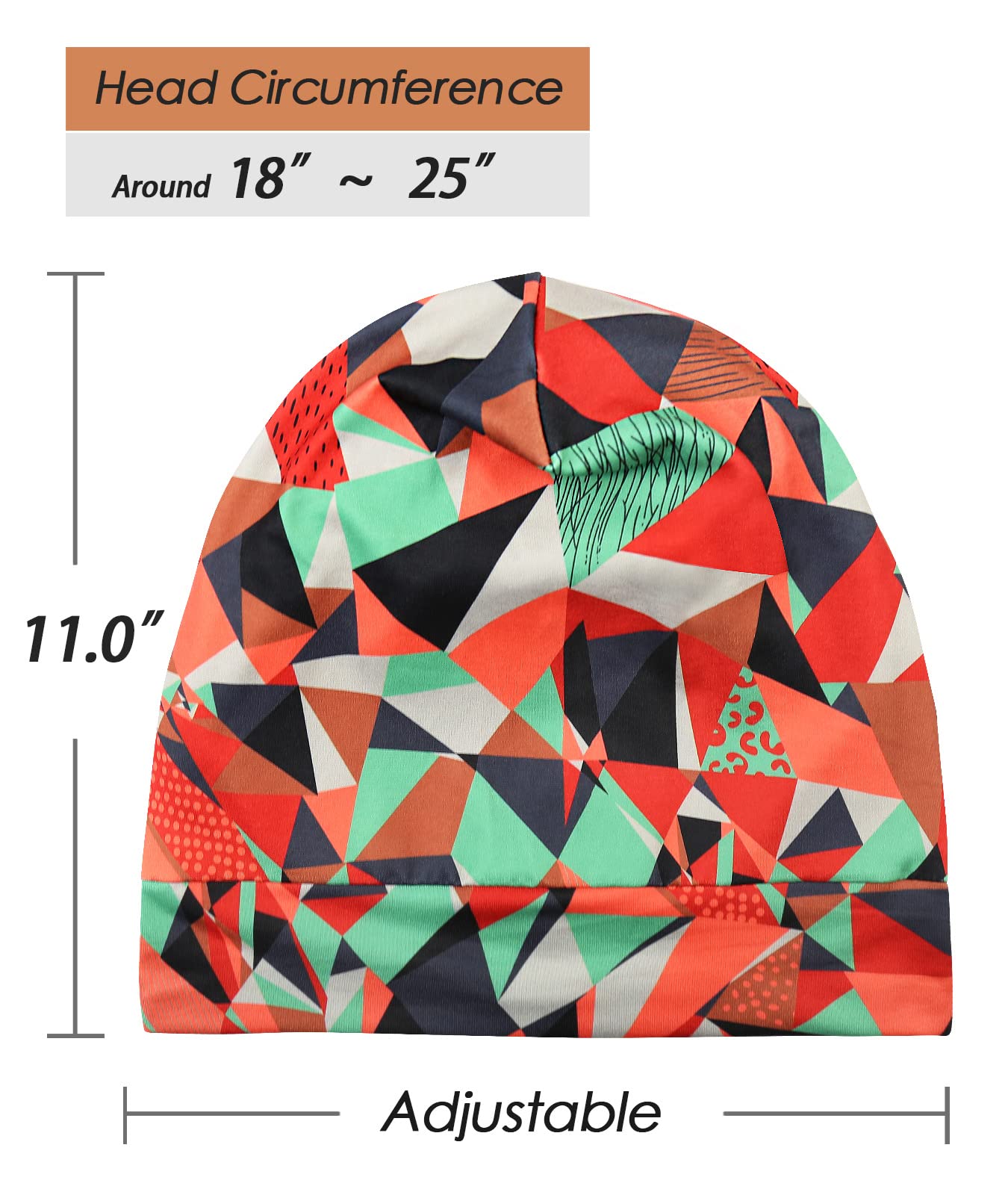 - ENJOY THE MOMENTS: Outer:95% Viscose,5% Spandex.Lining:100% satin.Great cap size with lightweight jersey cover full head very well and feel very comfortable. Satin lined caps are amazing accessory for caring your hair while helping you remain stylish.and work for tangles and dry hair