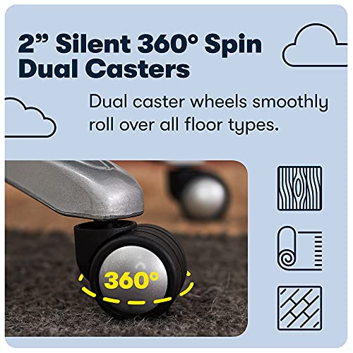 - ERGONOMIC SUPPORT: A contoured backrest, layered body pillows, adjustable height, tilt tension, well-padded headrest and molded arm rests combine to support your whole body. Durable base with 360º dual-wheel casters support up to 275 lbs.